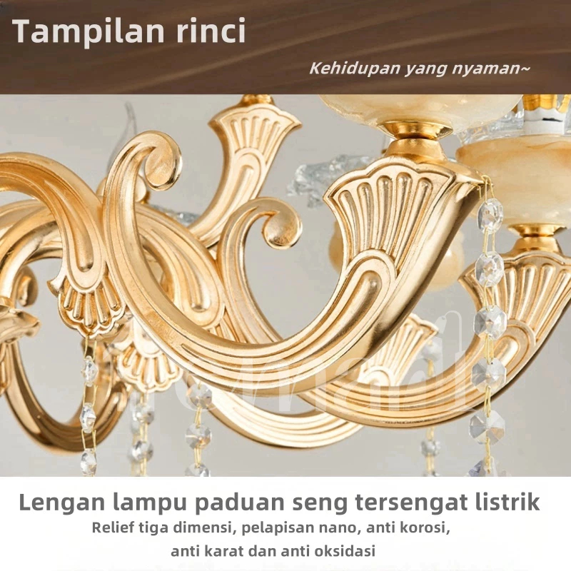 Lampu gantung ruang tamu aesthetic Lampu Gantung Kristal K9 Mewah Sederhana Perancis Ruang Tamu /Meja Makan / Kamar Tidur Lampu Hias Hotel