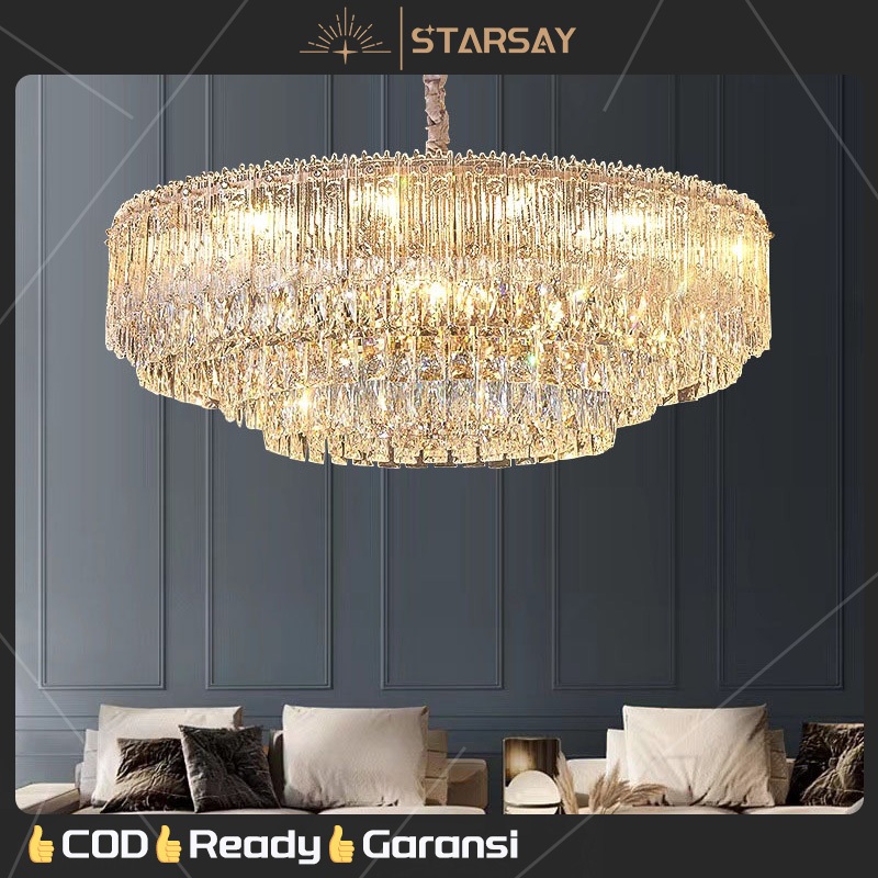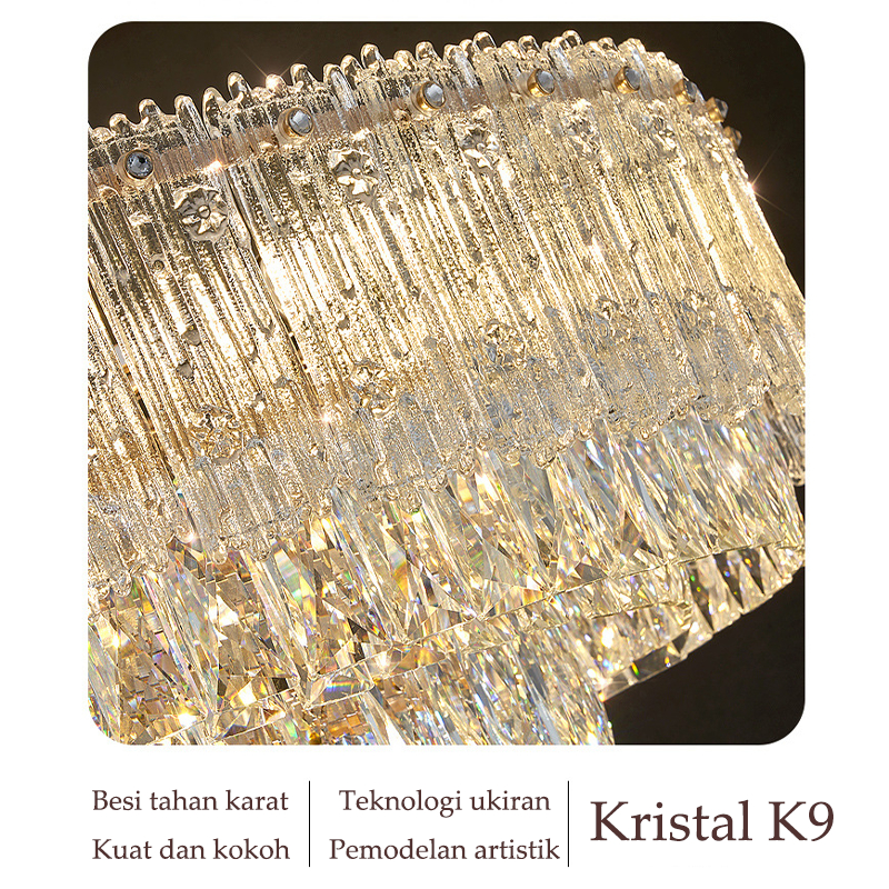 ⭐Garansi&Free Bohlam⭐Lampu Hias Gantung 60/40cm 3 Warna K9 Mewah Kristal Terukir Meja Makan Ruang Makan Ruang Tamu Kamar Tidur