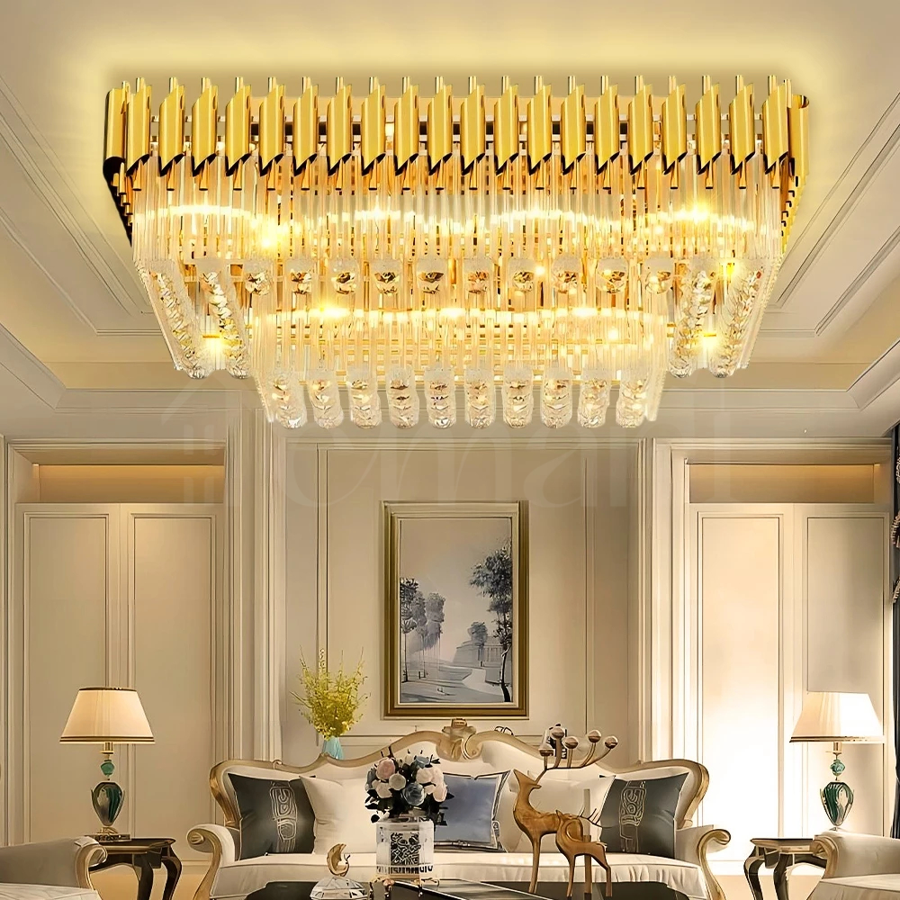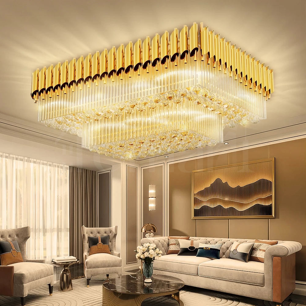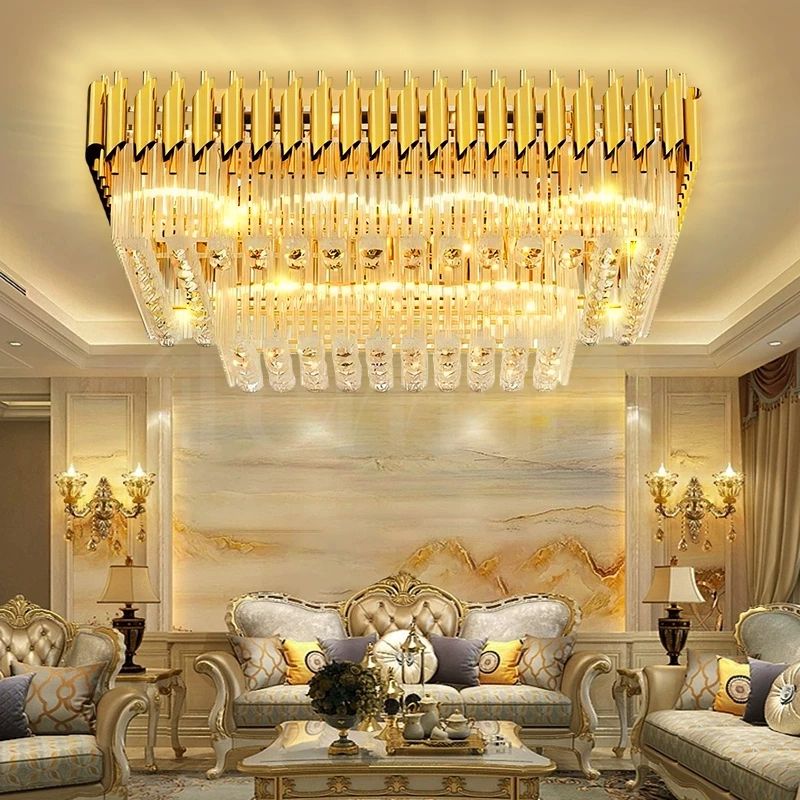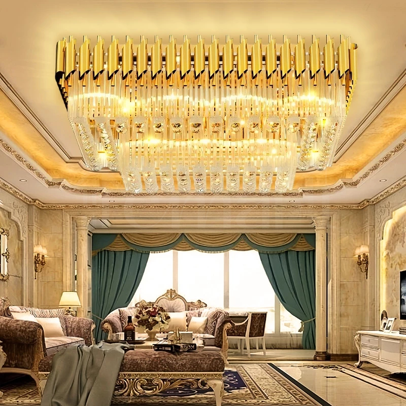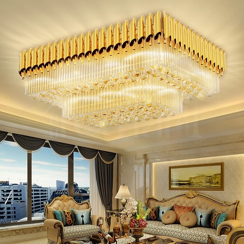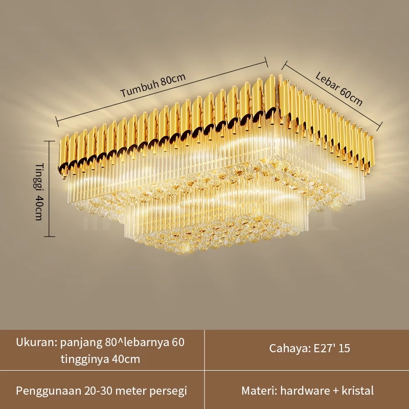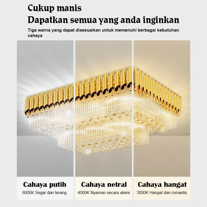 Lampu Gantung Kristal Besar Ruang Tamu Mewah dekorasi 3 Warna LED lampu Hias Plafon kristal 80cm Lampu Ruang Tamu Untuk Ruang Tamu / hotel ate