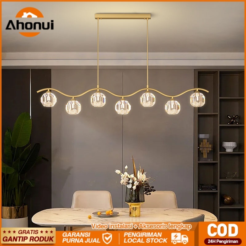 ✨Ahonui Garansi✨Lampu Gantung Kristal Lampu Hias GOL& 7 kristal Ball 3 warna Ruang Makan Modern Minimalis Pendant Light Minibar Kitchen G9 ljc