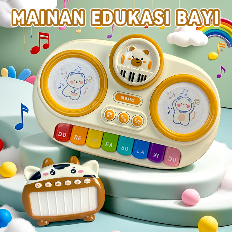 Mainan Piano + Drum Mainan 2in1 Piano Drum Elektronik Anak dengan Lampu Mainan Musik Edukasi Anak