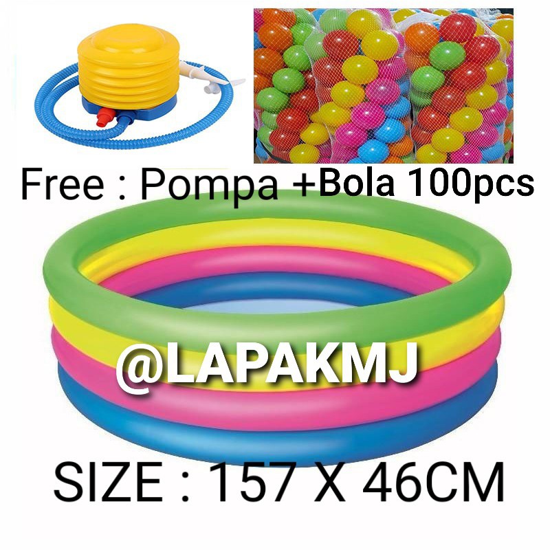 Bestway Kolam Renang Anak Pelangi 51117 Mandi Bola + Pompa Injak + Bola 100pcs