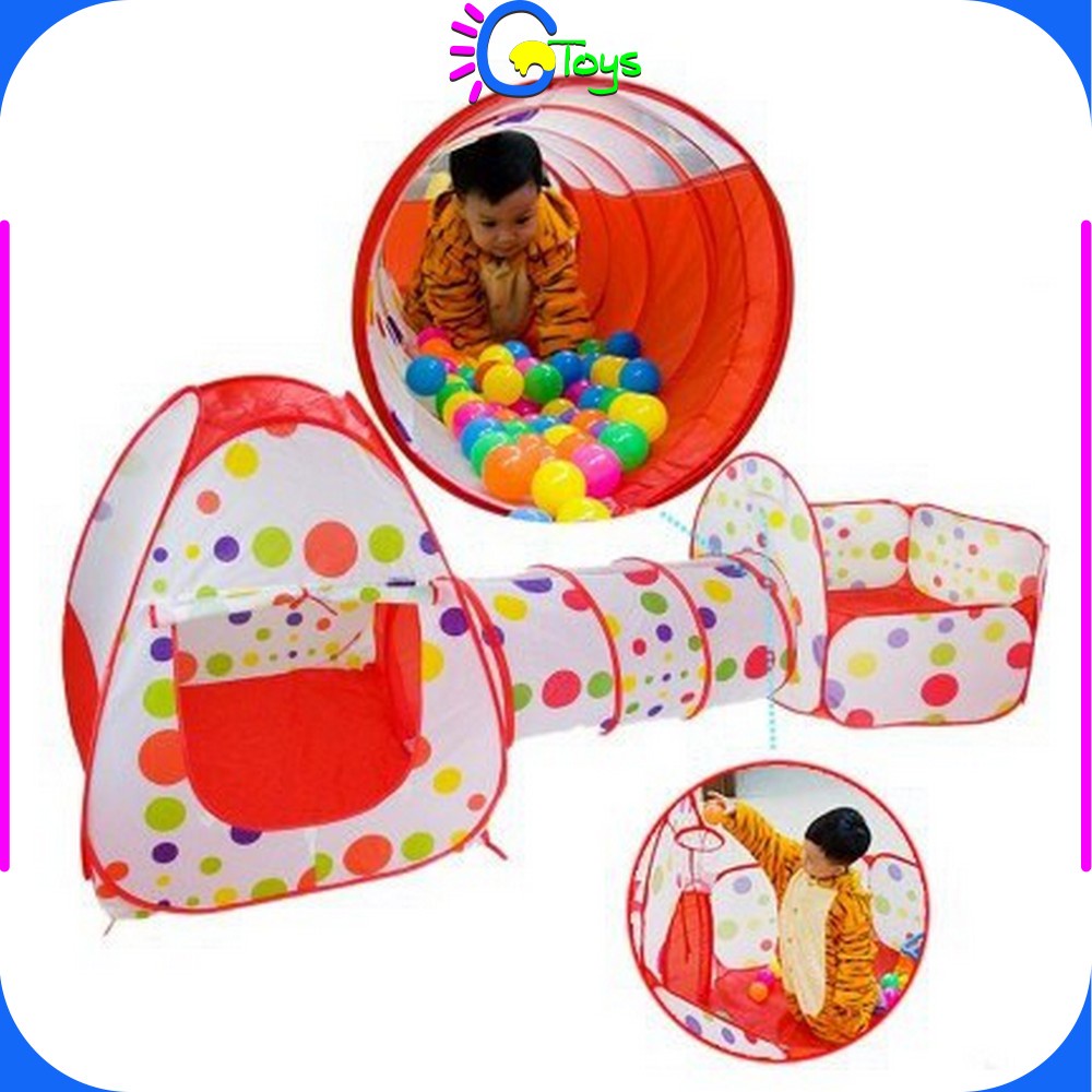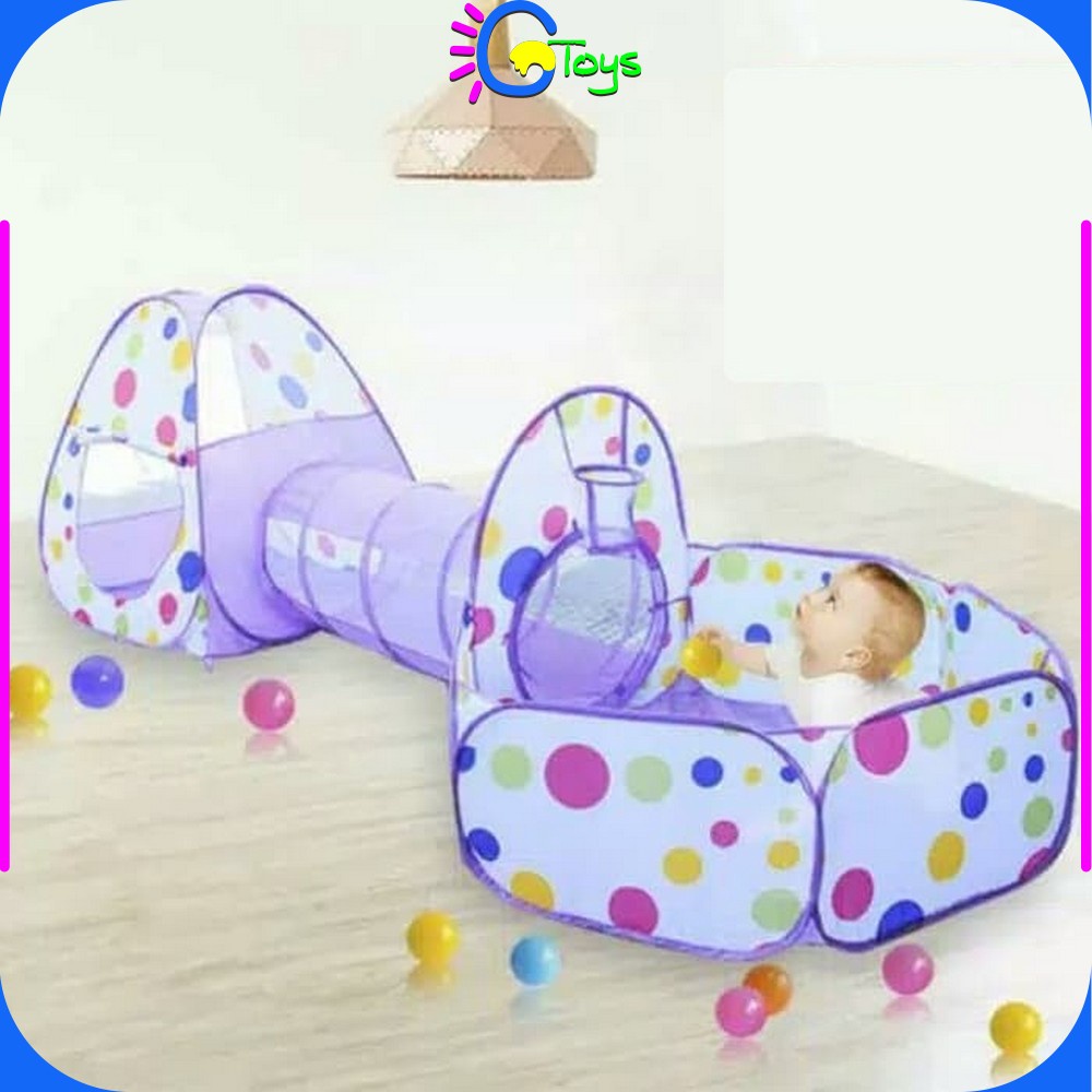 CR-M6 Mainan Tenda Anak Terowongan 4 in 1 + Kolam + Ring Basket Mainan Keranjang Mandi Bola Anak