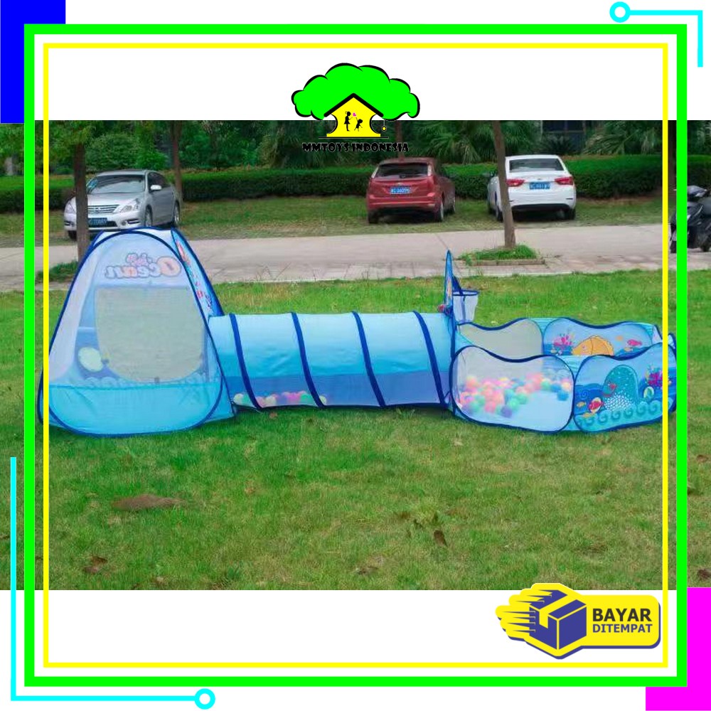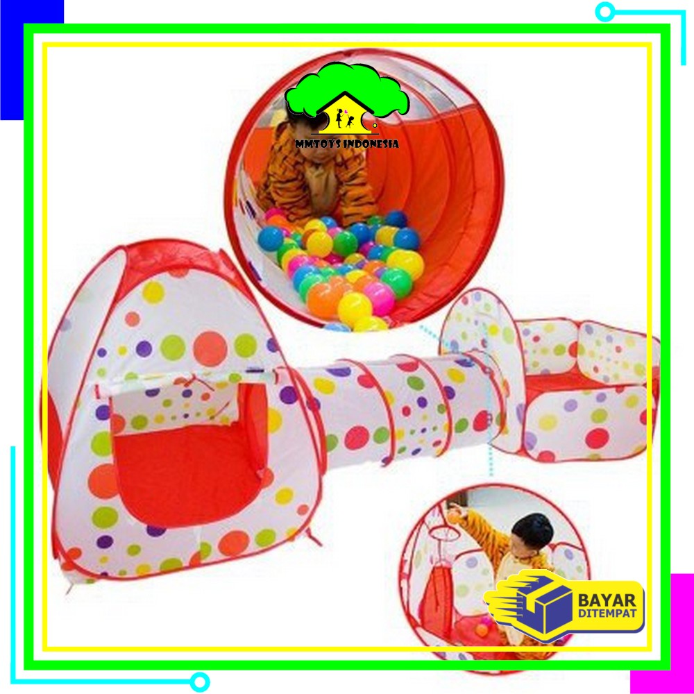 MI-M6 Mainan Tenda Anak Terowongan 4 in 1 + Kolam + Ring Basket Mainan Keranjang Mandi Bola Anak