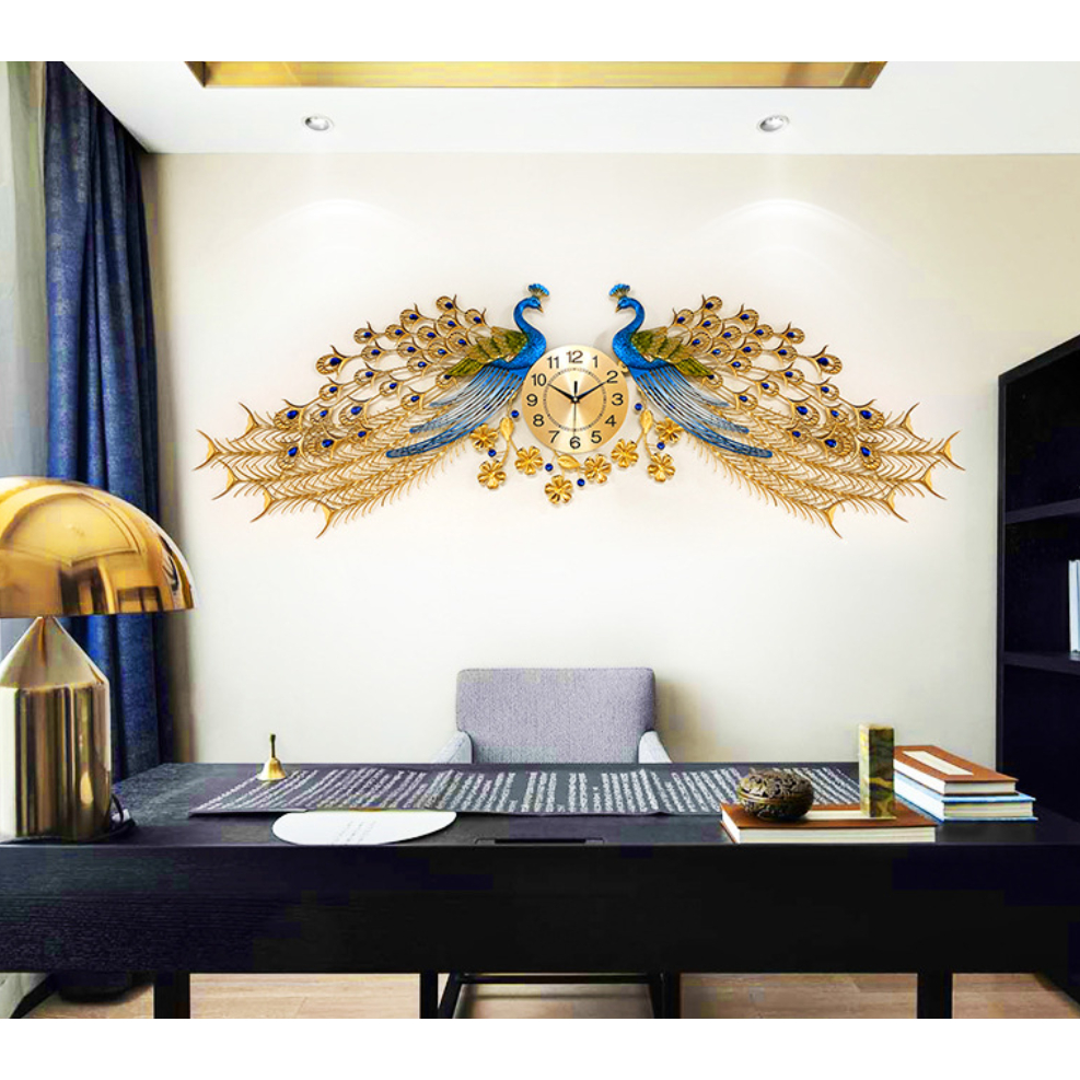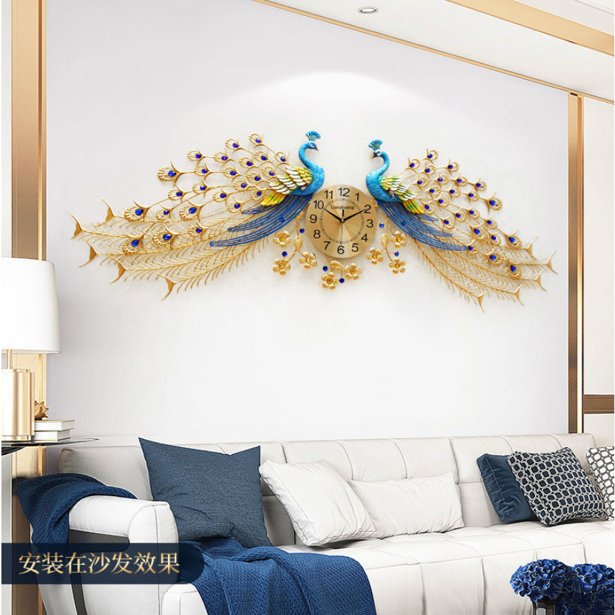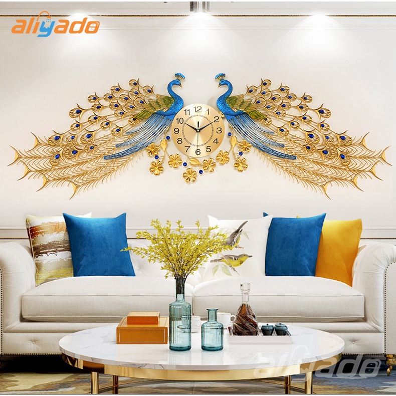 Jam Dinding Besar Merak Ruang Tamu 16855cm Jam Dinding Mode Bisu Logam Jam Dinding Dekoratif Bergaya Atmosfer