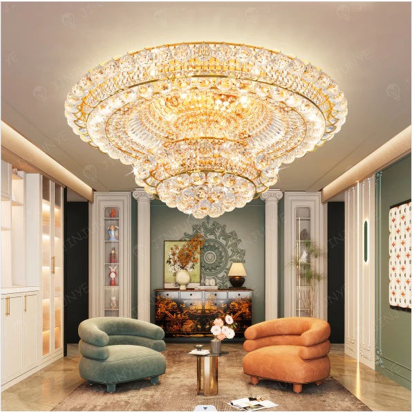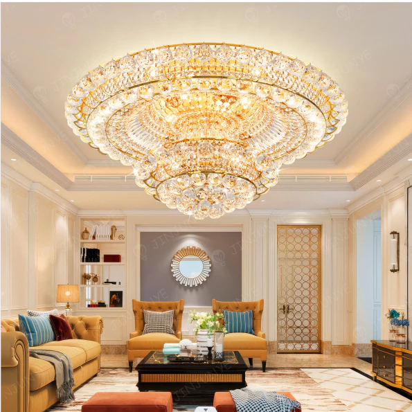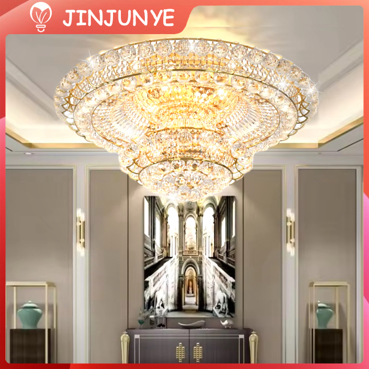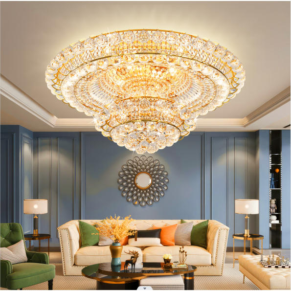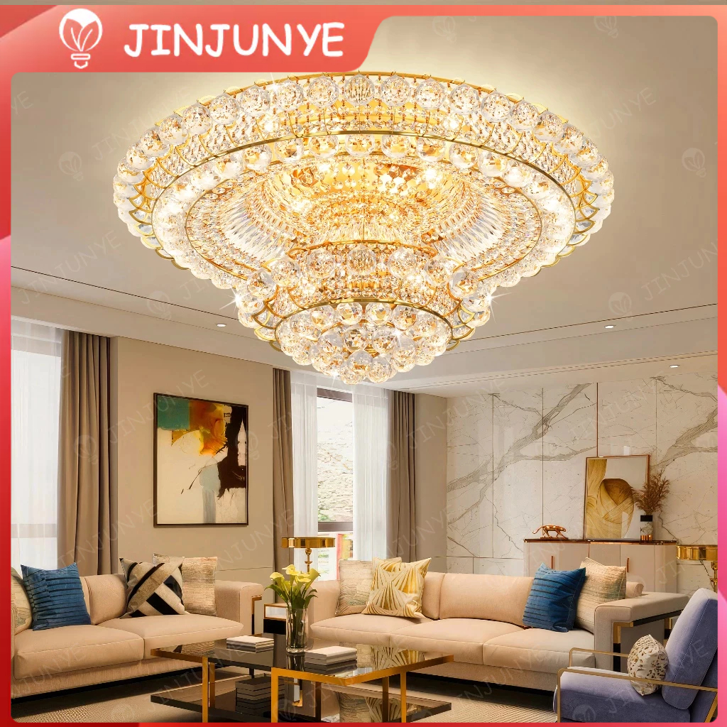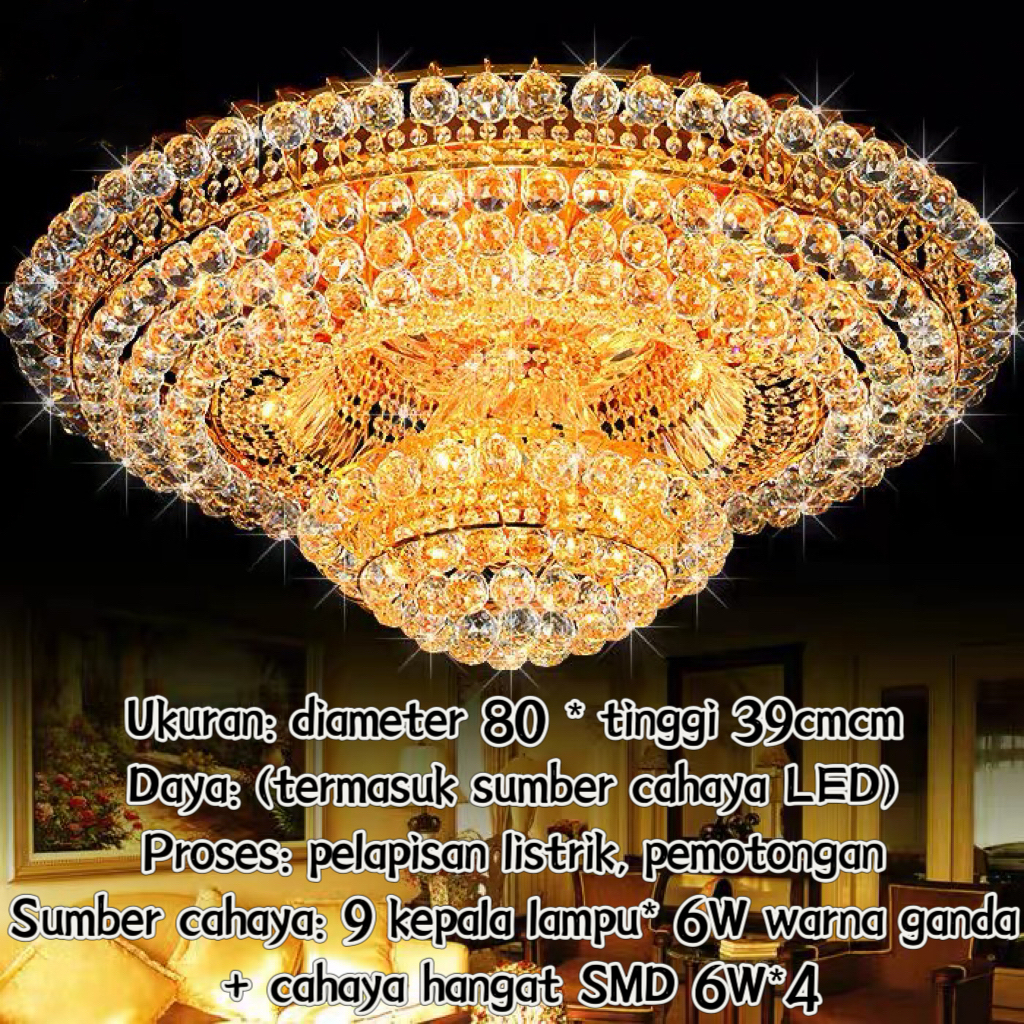Lampu Gantung Kristal Mewah 80cm Double-Layer Besar Ruang Tamu dekorasi Modern Kristal 3 Warna LED lampu Hias Plafon kristal Untuk Ruang Tamu