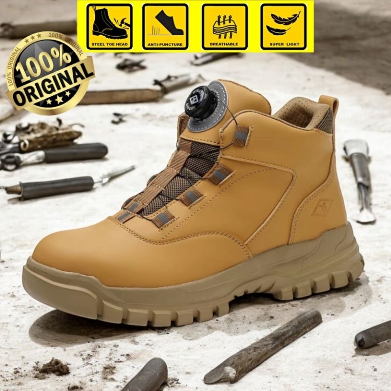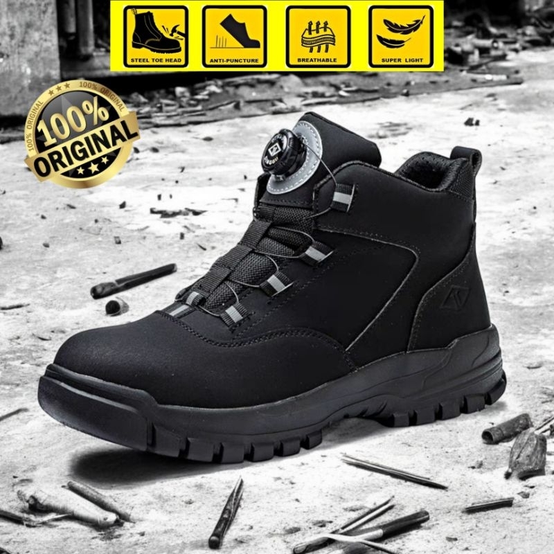 Sepatu Safety Sneaker Tali Putar Original DINGGU 827 Outdoor Ringan Anti Slip Anti Paku