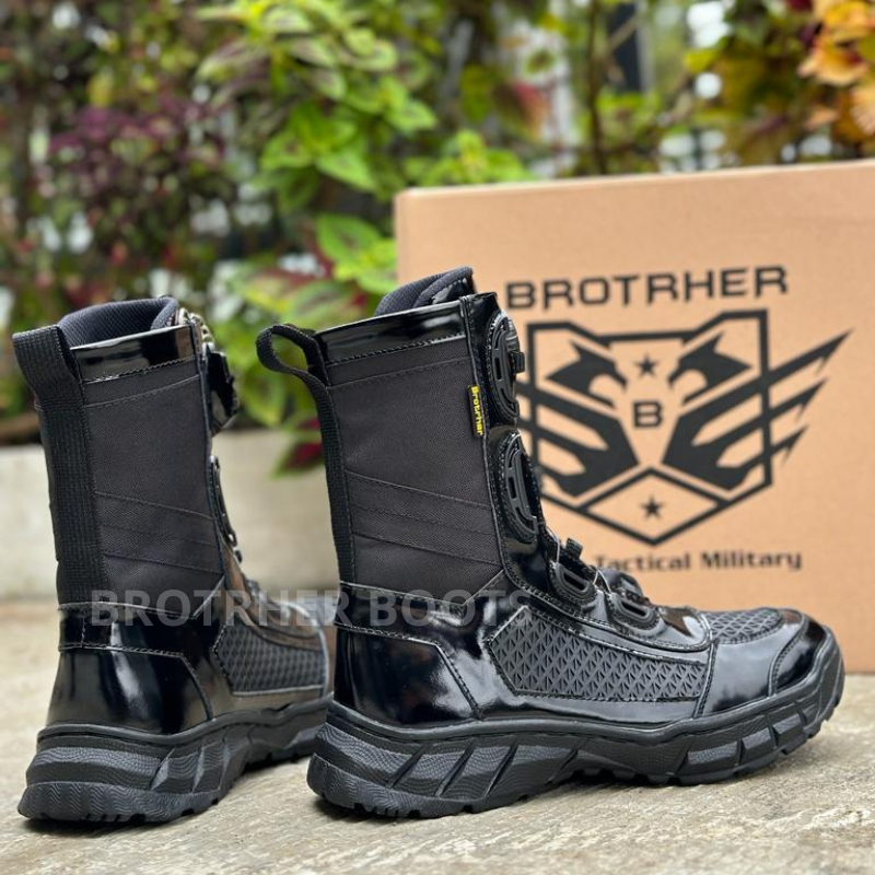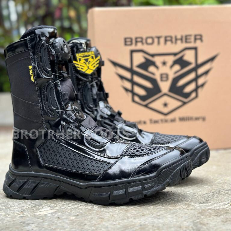 Sepatu pdl brother tali putar kulit asli mengkilap model jala tawon tni polri security free kaos kaki
