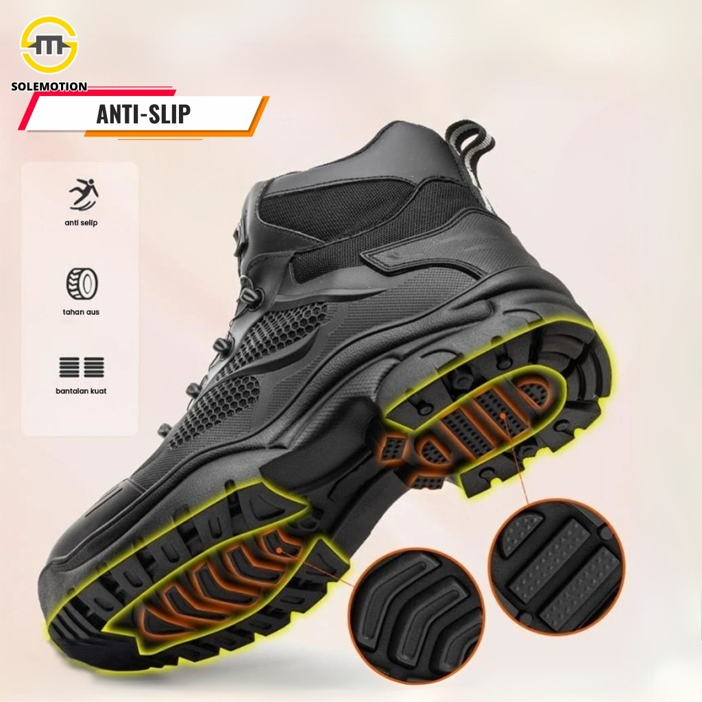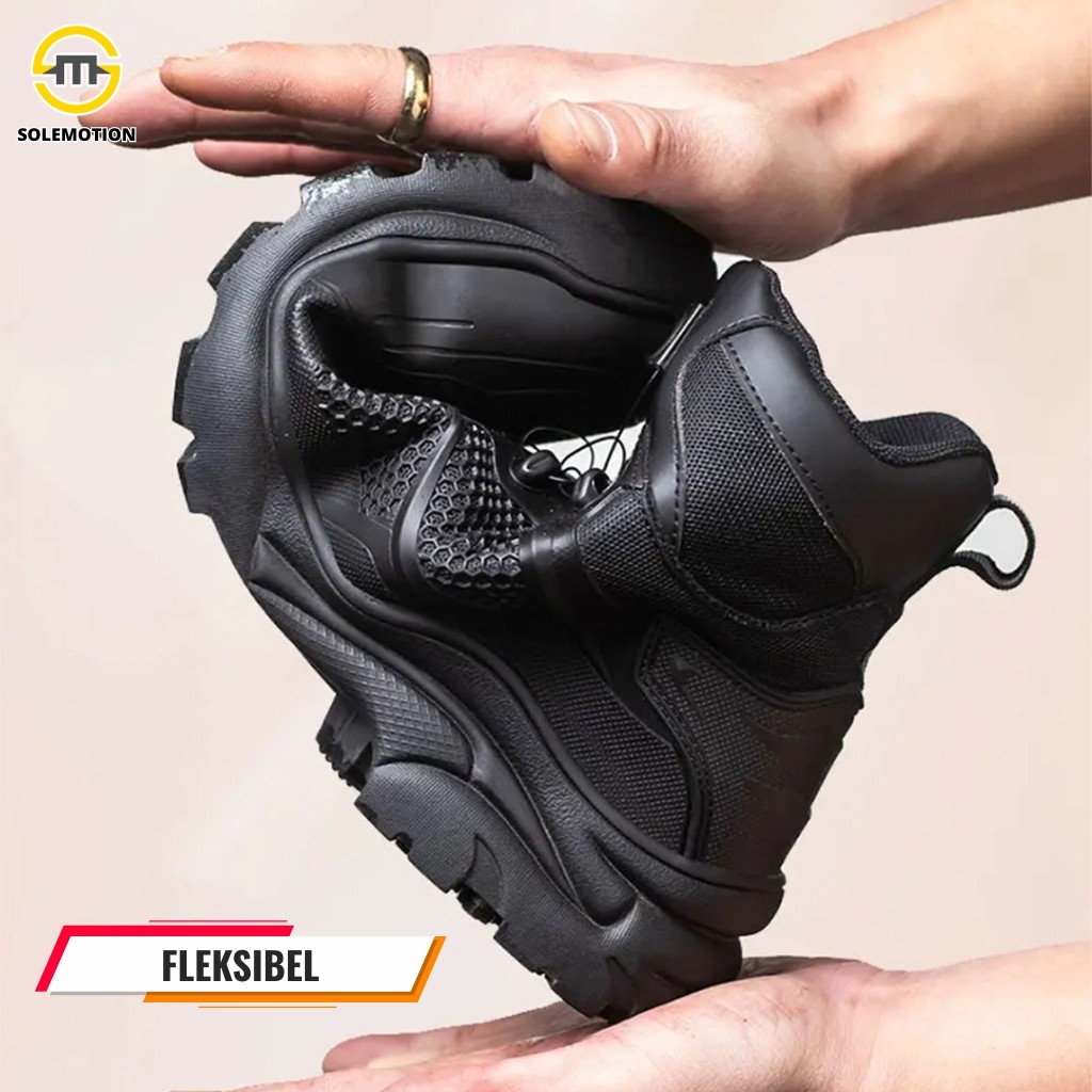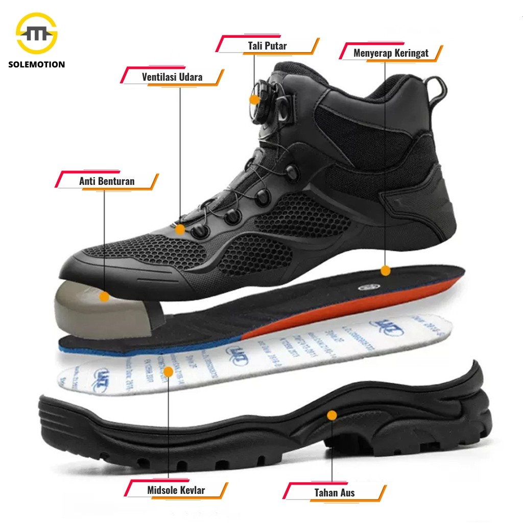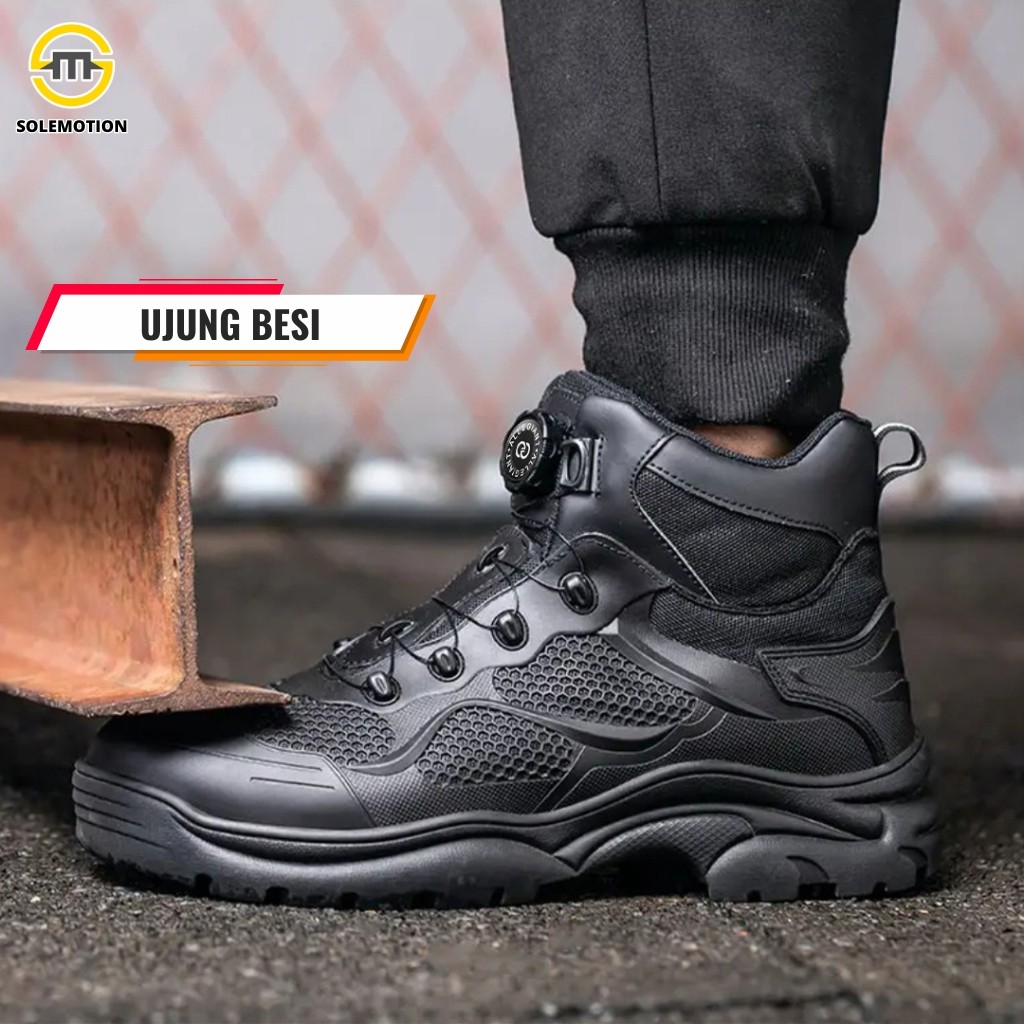Sepatu Safety Pria Ujung Besi Tali Putar Boots Kerja Proyek Tactical Outdoor Solemotion - Gravton