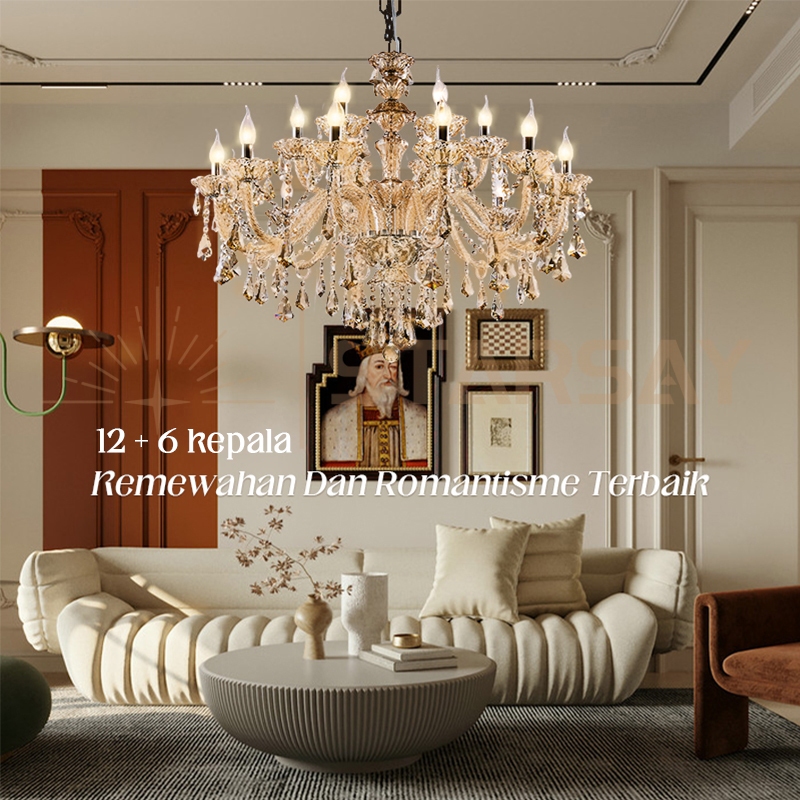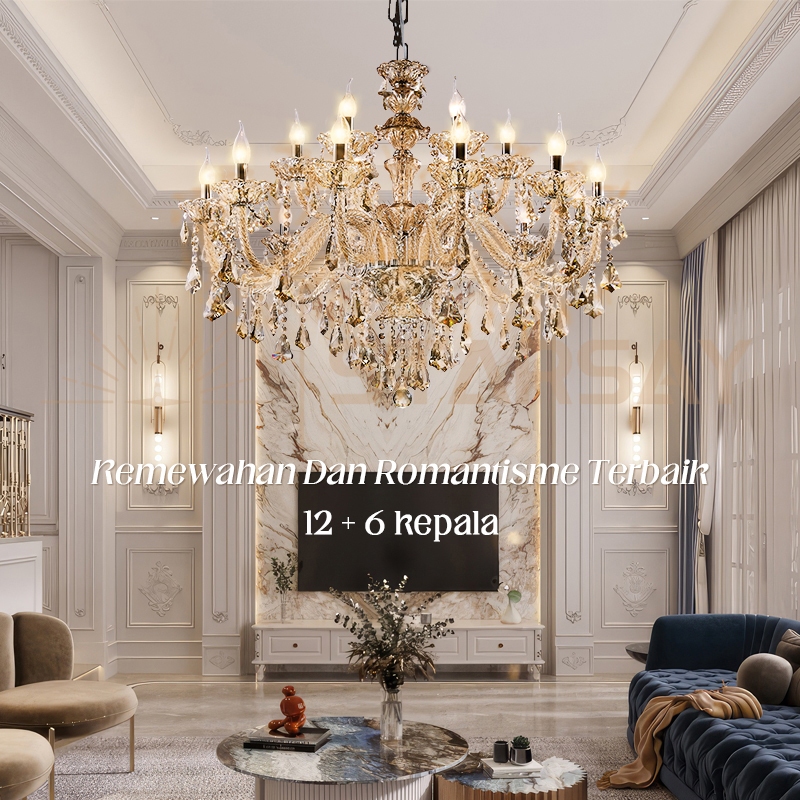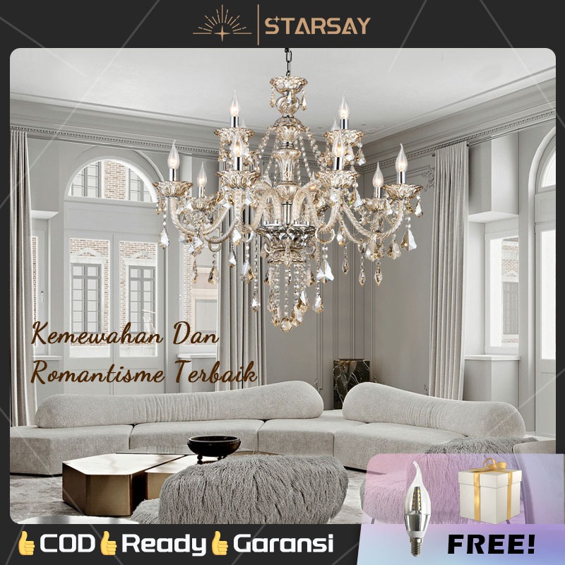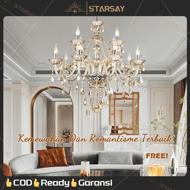 ⭐Kristal& free bohlam⭐Lampu Hias Gantung Kristal Mewah Lampu Gantung Gaya Pengadilan Baroque 95 &75 & 85cm Lampu Ruang Tamu