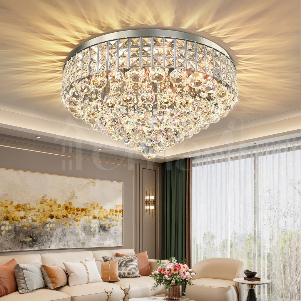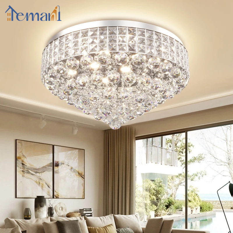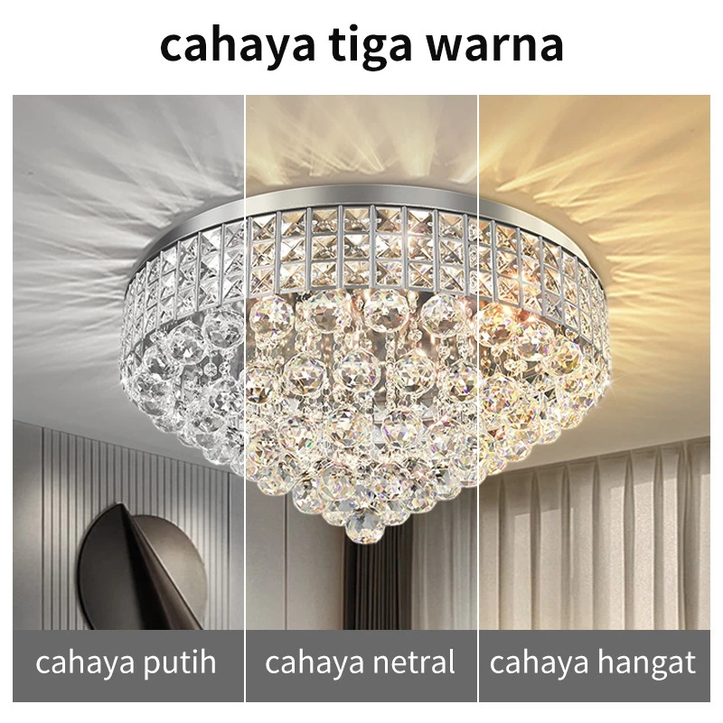 Lampu Gantung Kristal Pagoda 50cm Lampu Plafon Ruang Tamu Mewah New Crystal Ceiling Lamp 3 warna LED Crystal Ceiling Lamp Modern Ruang Tamu