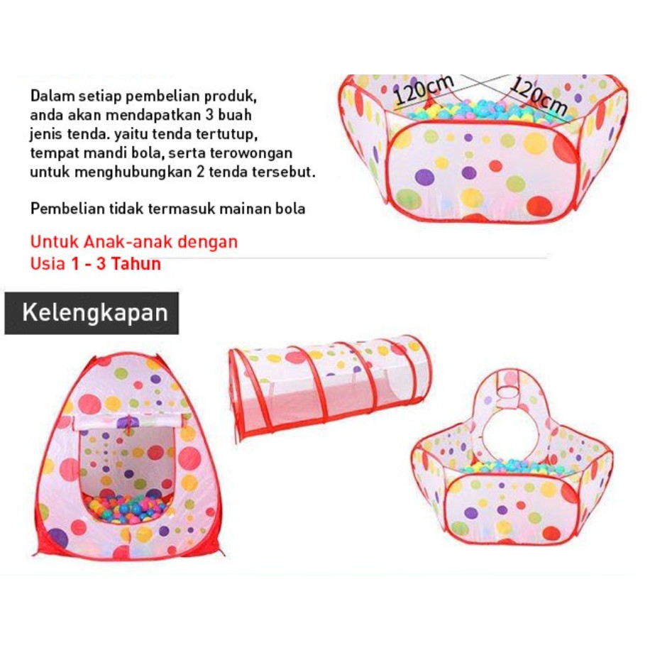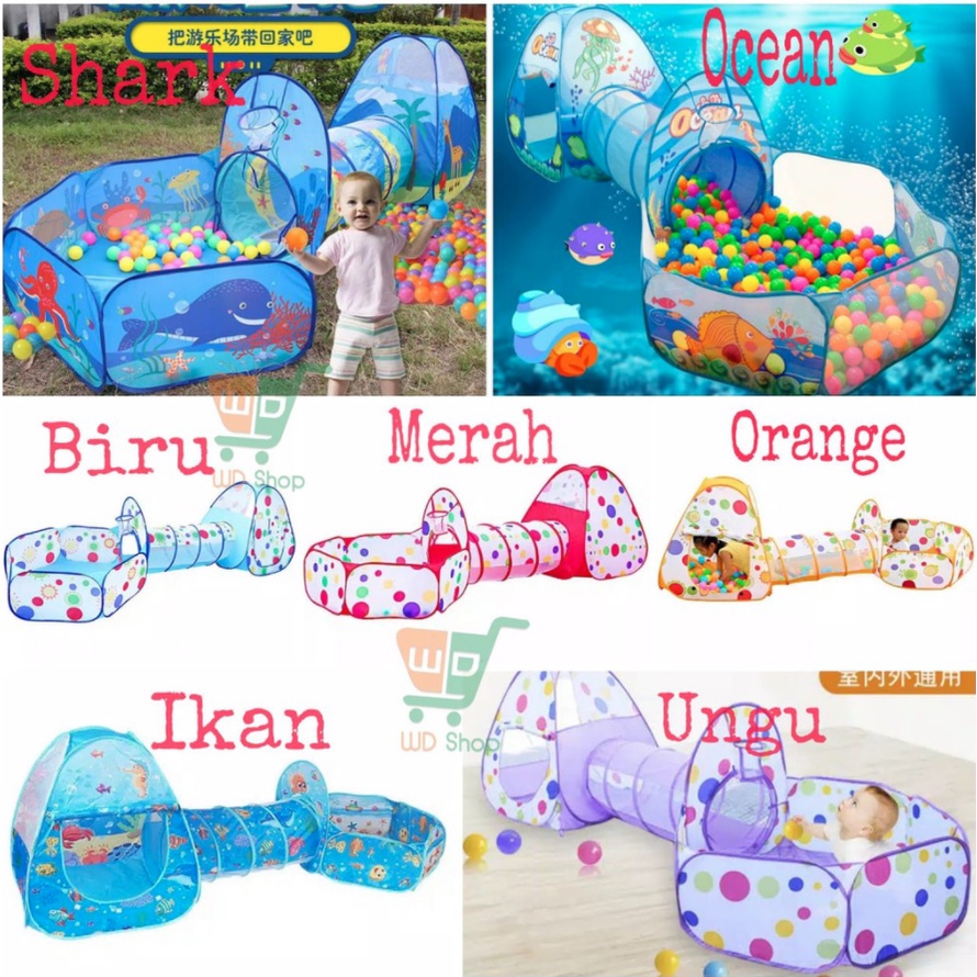 Mainan Tenda Anak Terowongan 4 in 1 + Kolam + Ring Basket Mainan Keranjang Mandi Bola Anak CHOCHO 88 SHOP