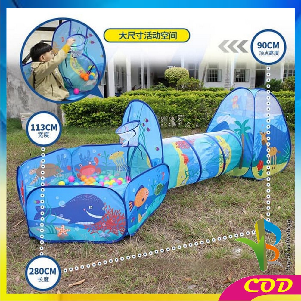 RB-M6 Mainan Tenda Anak Terowongan 4 in 1 + Kolam + Ring Basket Mainan Keranjang Mandi Bola Anak