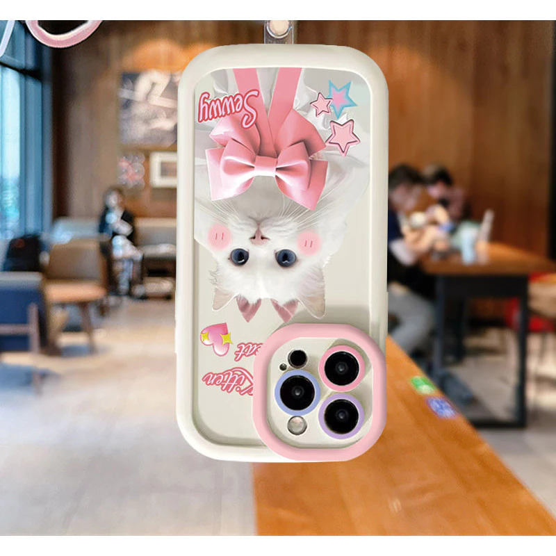 Casing Hp Softcase Silikon Simple Kitten Pink Bow Untuk Redmi A5 Note 14 4G/5G 14C 13 A3 POCO M6 C61 Note 13 Pro 12 12C