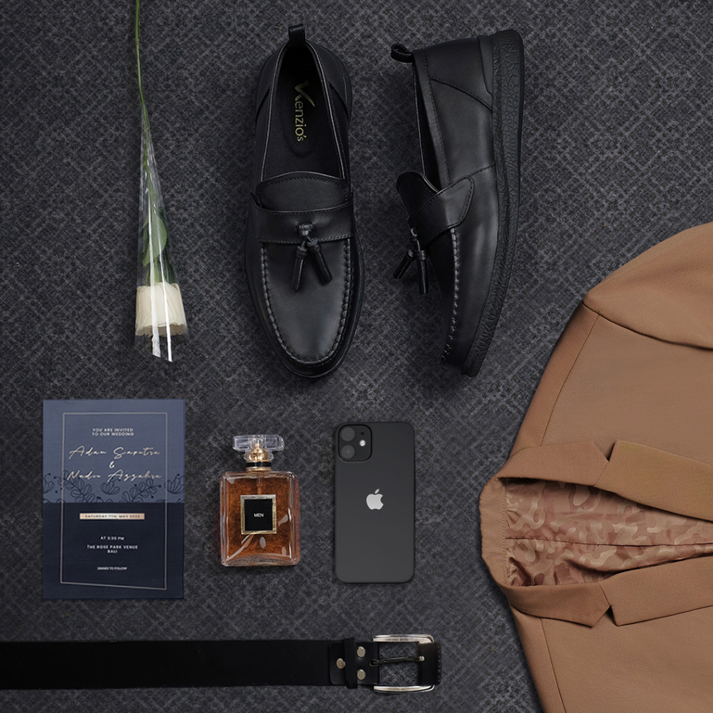 Kenzios Sepatu Formal Pria Kulit Asli Vasco Black Series
