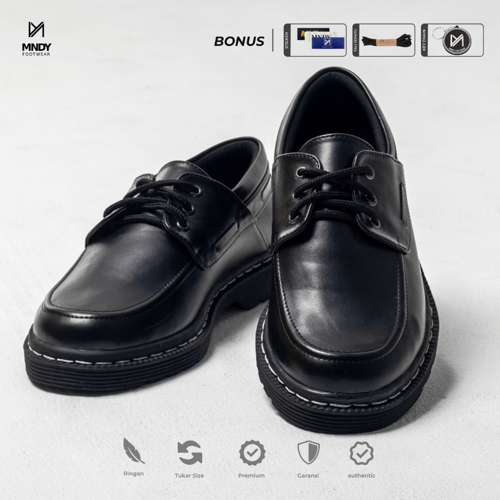 MNDY Official - Oslan Black - Sepatu Pantofel Docmart Hitam Pria