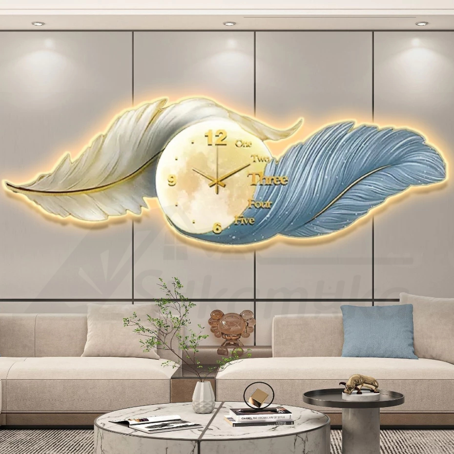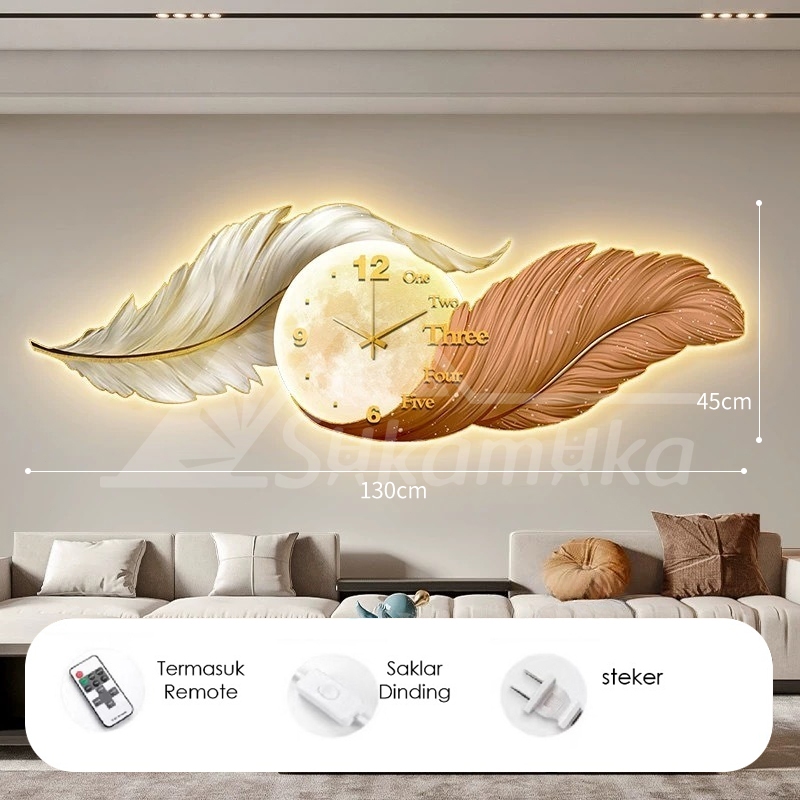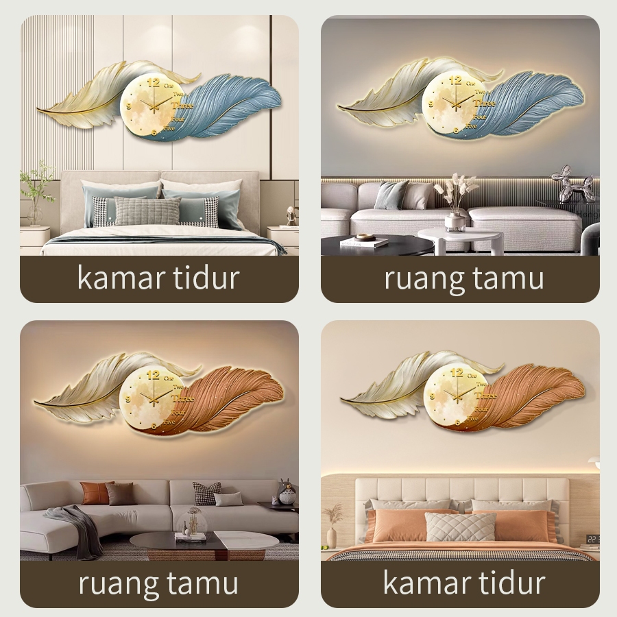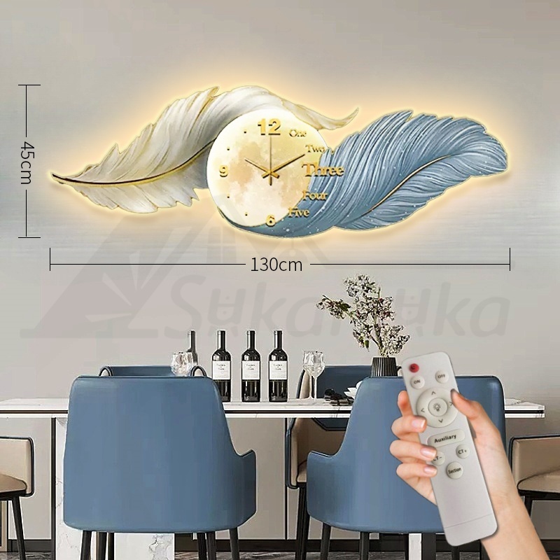 ✨Garansi & Remote✨Lampu Jam Dinding Ruang Tamu Minimalis Modern Lampu Lukisan Dinding Jam Bentuk Bulu Angsa Gaya remote led