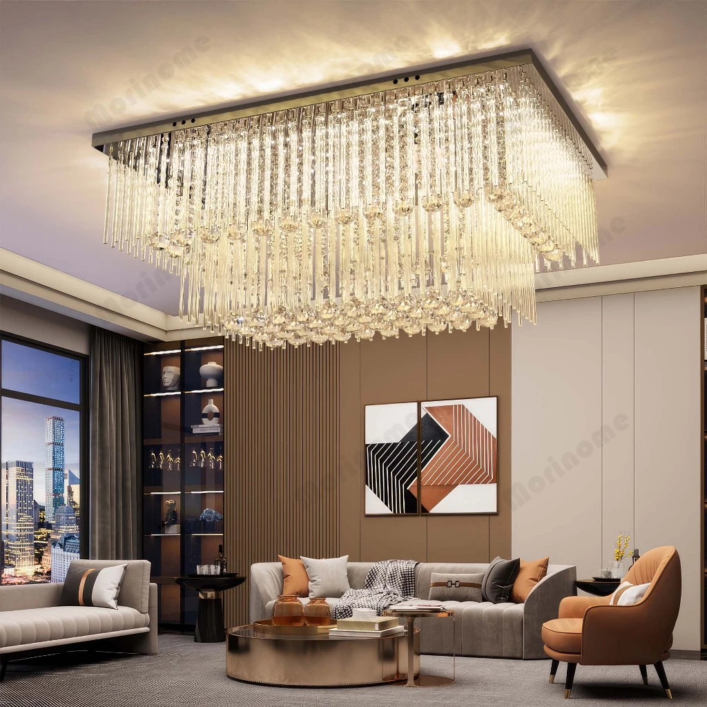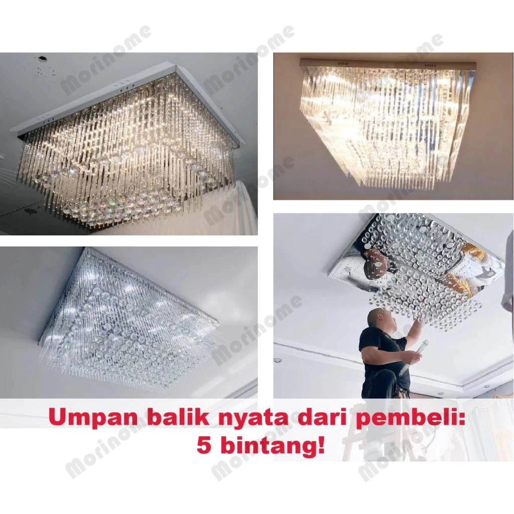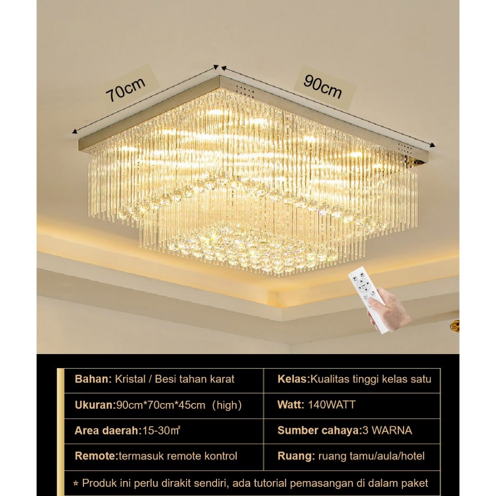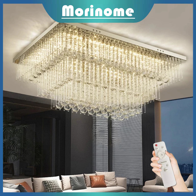 Lampu Gantung Kristal Ruang Tamu Besar 10070cm Remote Contronl 3 Warna 3Layers Lampu Hias Plafon Crystal K9 Mewah Modern Lampu plafon
