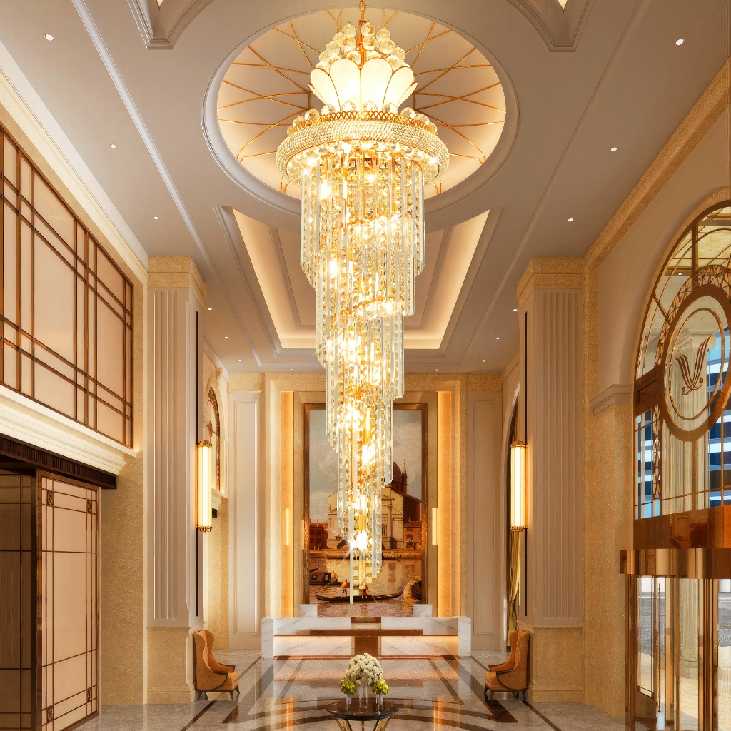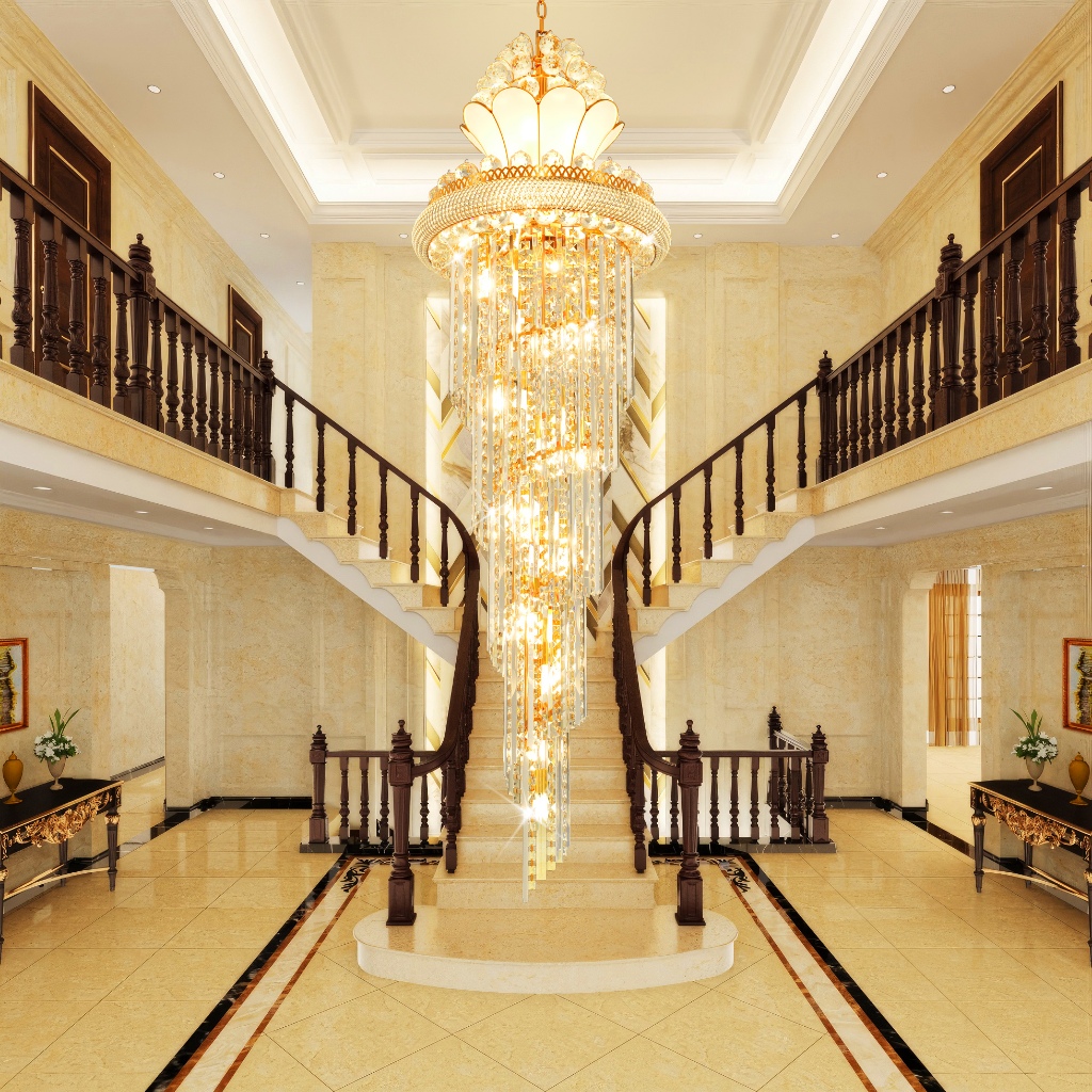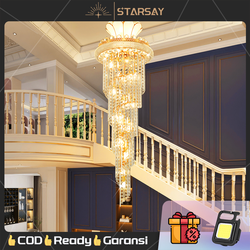 ✊D60180cm ✊Lampu Gantung Kristal K9 3Warna Mewah Tangga Modern Ruang Tamu Ruang Vila Hotel Pernikahan Lampu Hias Gantung Chandelier