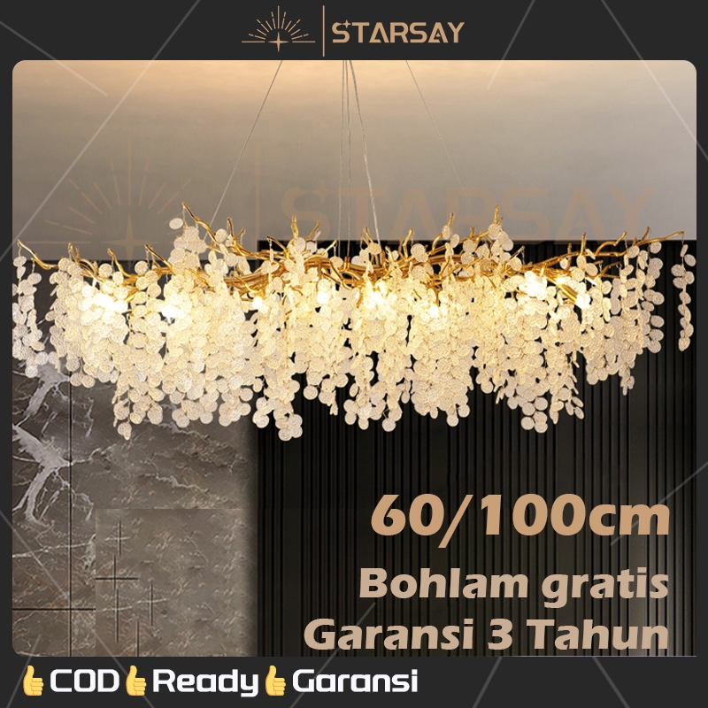 ✨Panjang 100cm✨Lampu Kristal Gantung Hias Mewah dekoratif 100/60cm Panjang 3 Warna Lampu Bohlam termasuk G9 Ruang Tamu Ruang Makan
