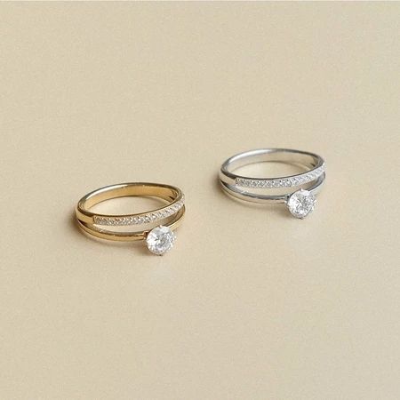 Double Solitaire Paved Zirconia Ring — Gld Plated Stainless Steel Cin cin Anti Karat