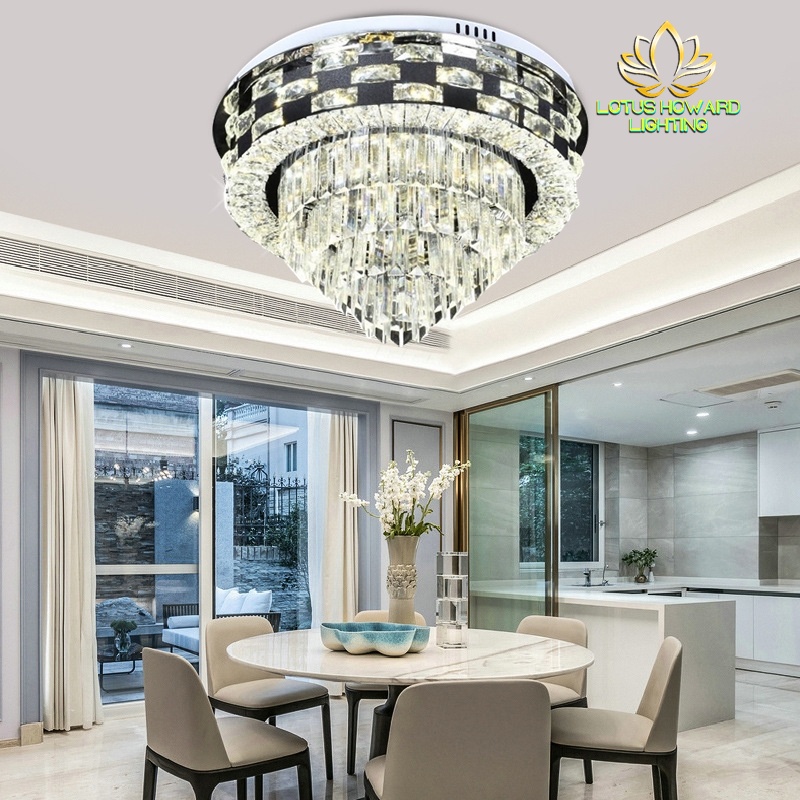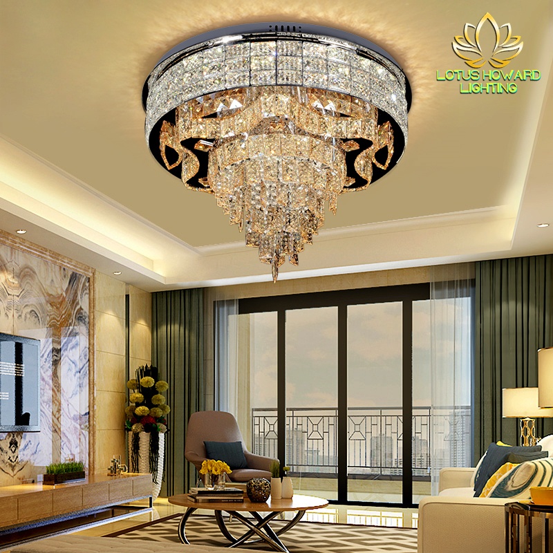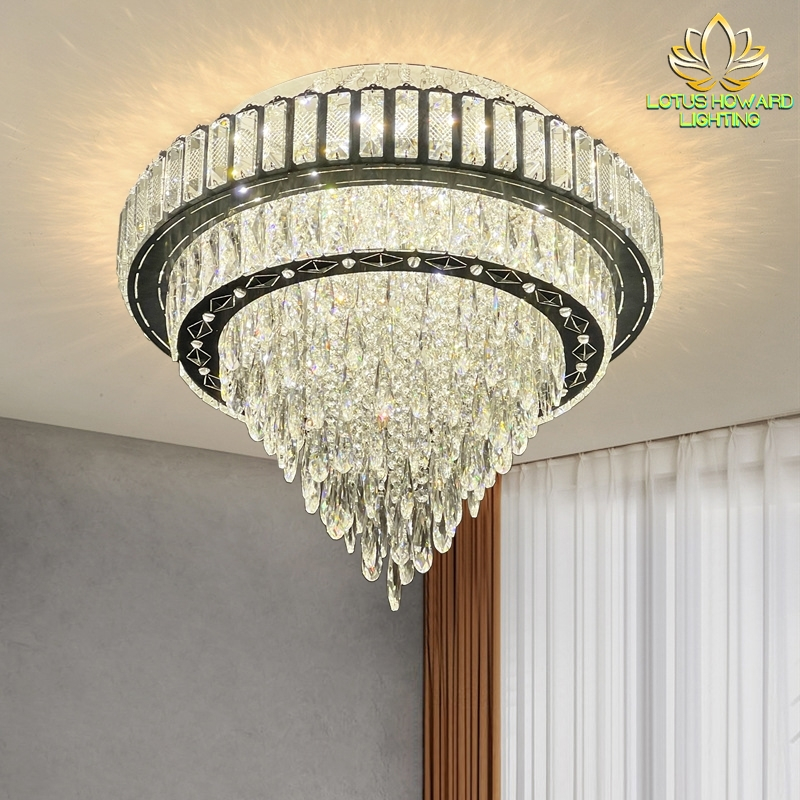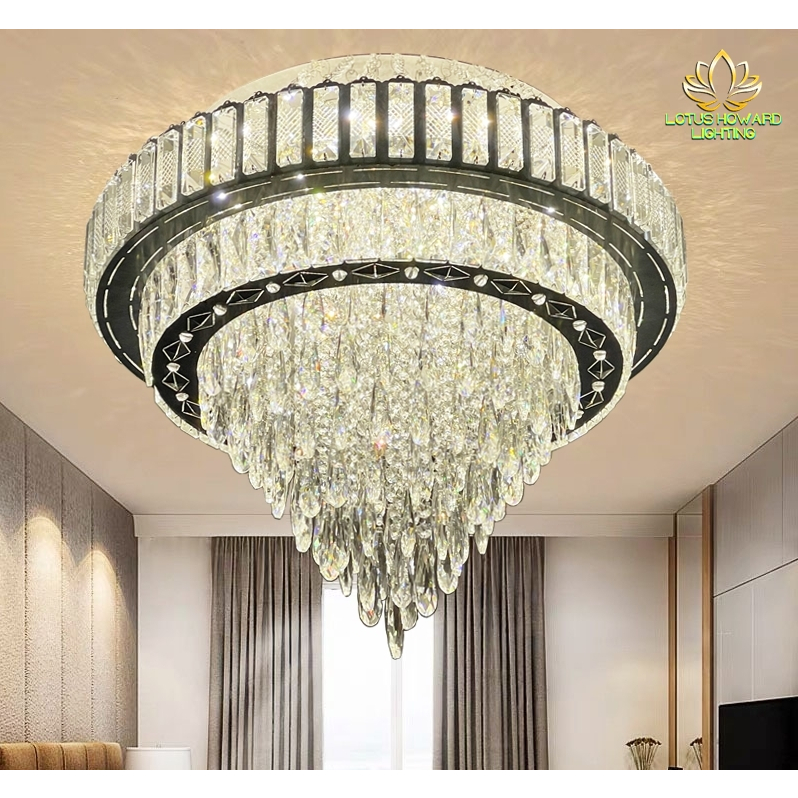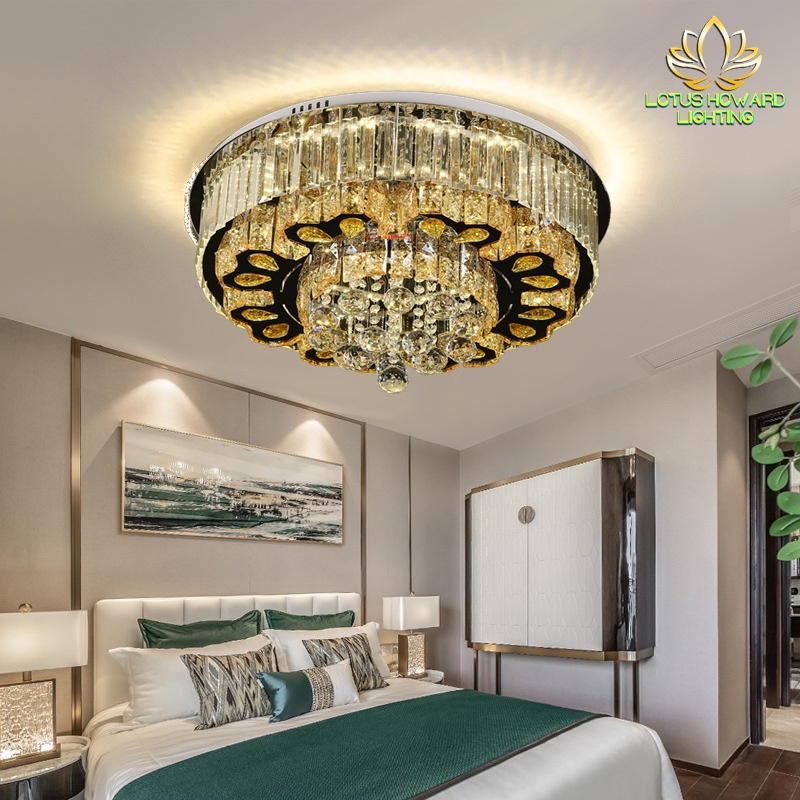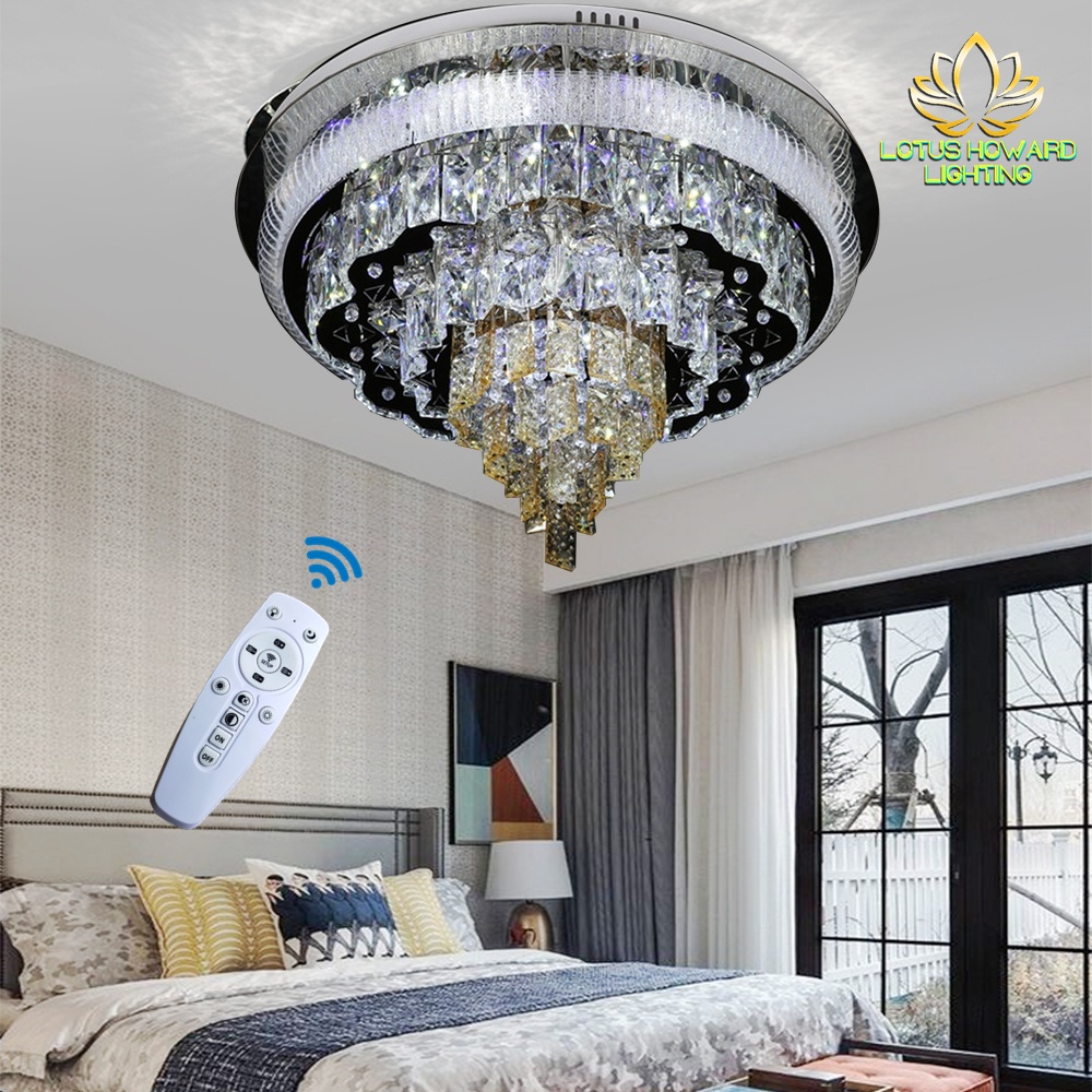 LAMPU HIAS PLAFON KRISTAL LED 3WARNA MODEL AM2293 D60CM REMOTE DIMMER