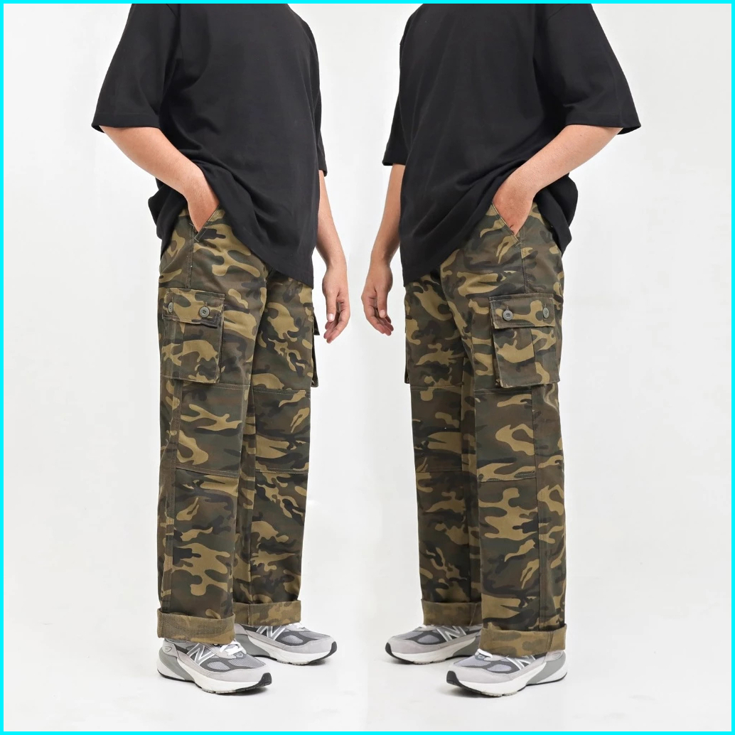 Celana Loreng Panjang Pria Cargo Baggy Pants Loreng Gombrong Cargo Pants Loreng