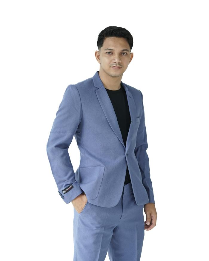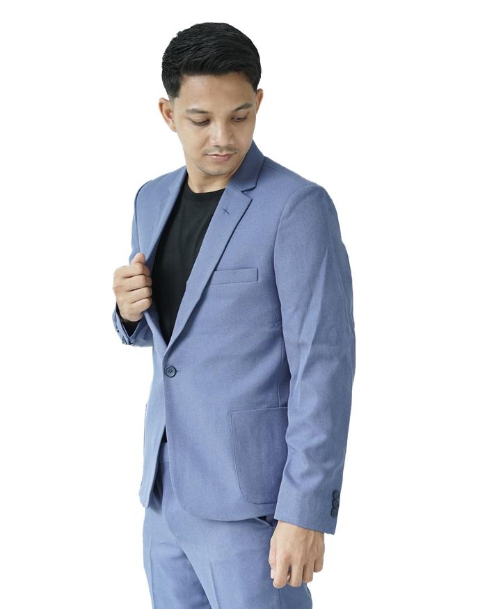 Blazer Casual Pria Blue Denim | Jas Kancing 1 Slimfit | Andre Laurent (313)