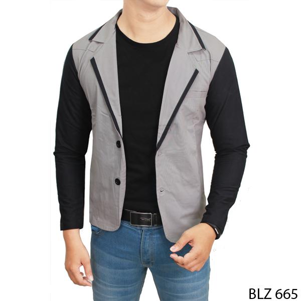 Desain Blazer Pria Modern Streetch Abu Kombinasi BLZ 665