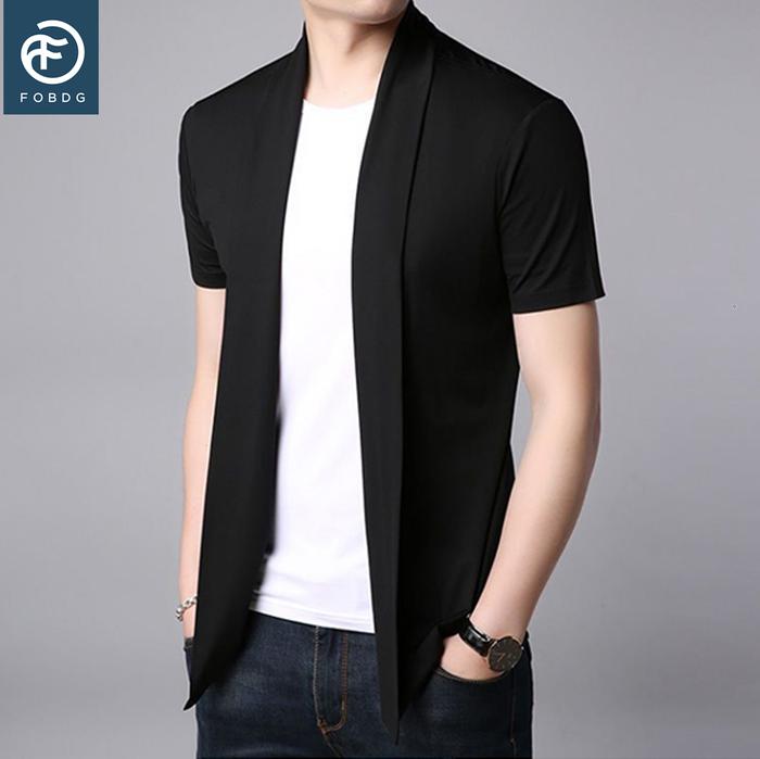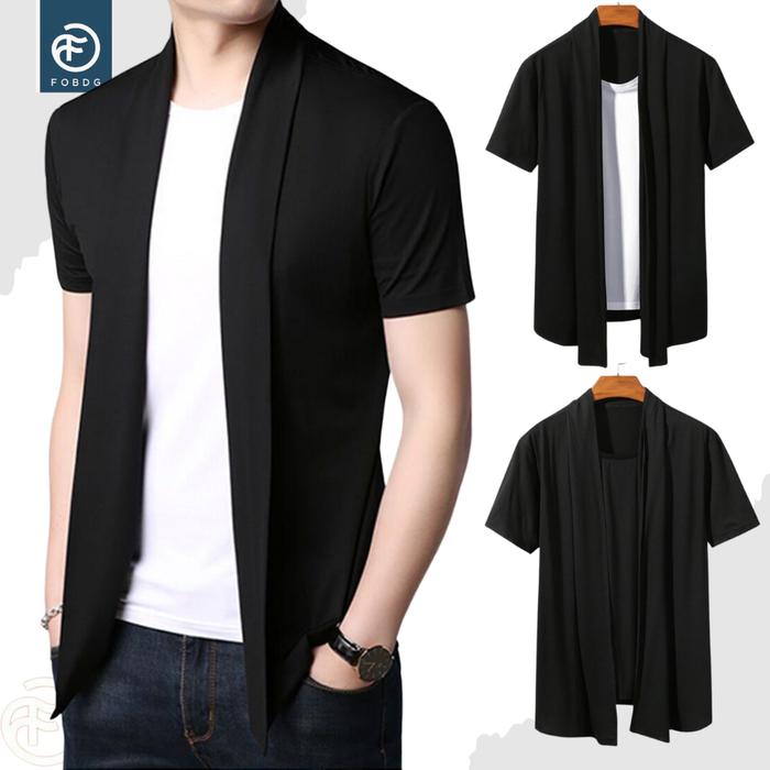 Blazer Pria Luar Dalam Menyatu Blazer Polos Lengan Pendek Bahan adem Semi formal Blazer Bayur Dalaman Putih Dan Hitam