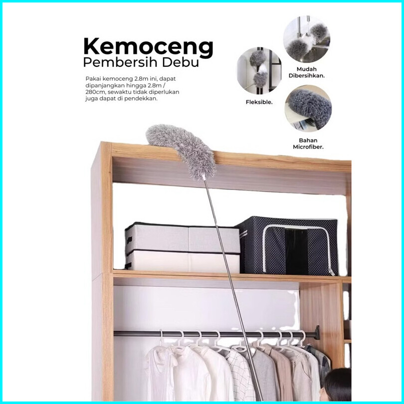 Kemoceng Microfiber Stainless Panjang 2 8 Meter Alat Pembersih Bagian Rumah Yang Sulit Dijangkau