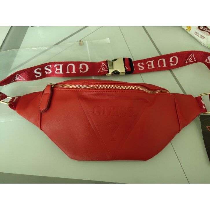 [Official Store ✅] TAS SLEMPANG WANITA GUESS Leather Waistbag Kulit PU BLACK GOLD PINK RED