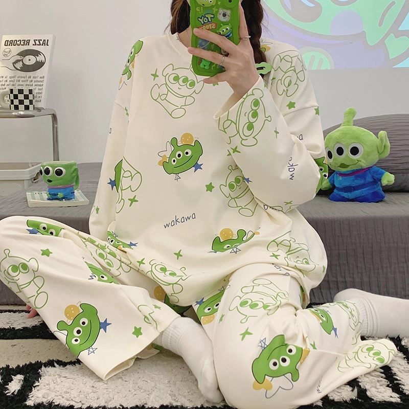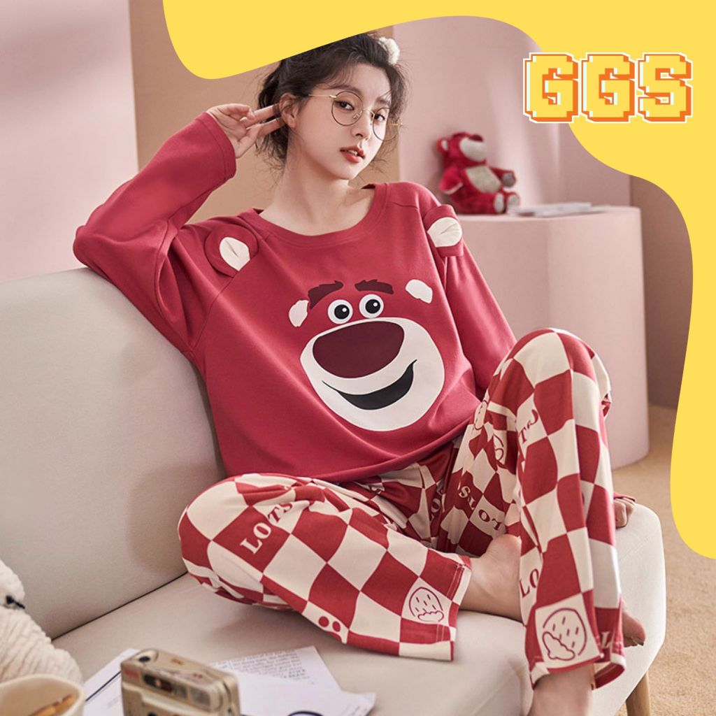 GGS Piyama Set Baju Tidur Wanita Lengan Panjang Celana Panjang Setelan Pajama Perempuan Dewasa Remaja Woman Sleepwear Fa