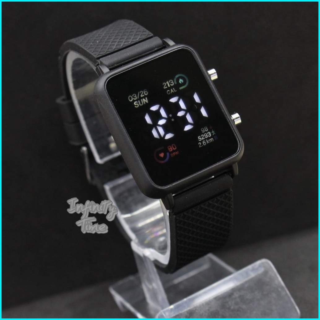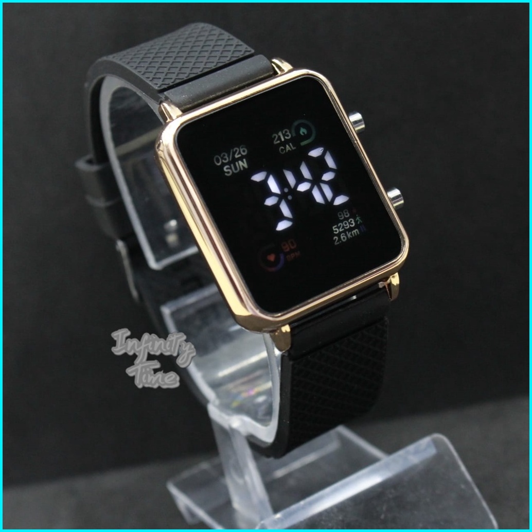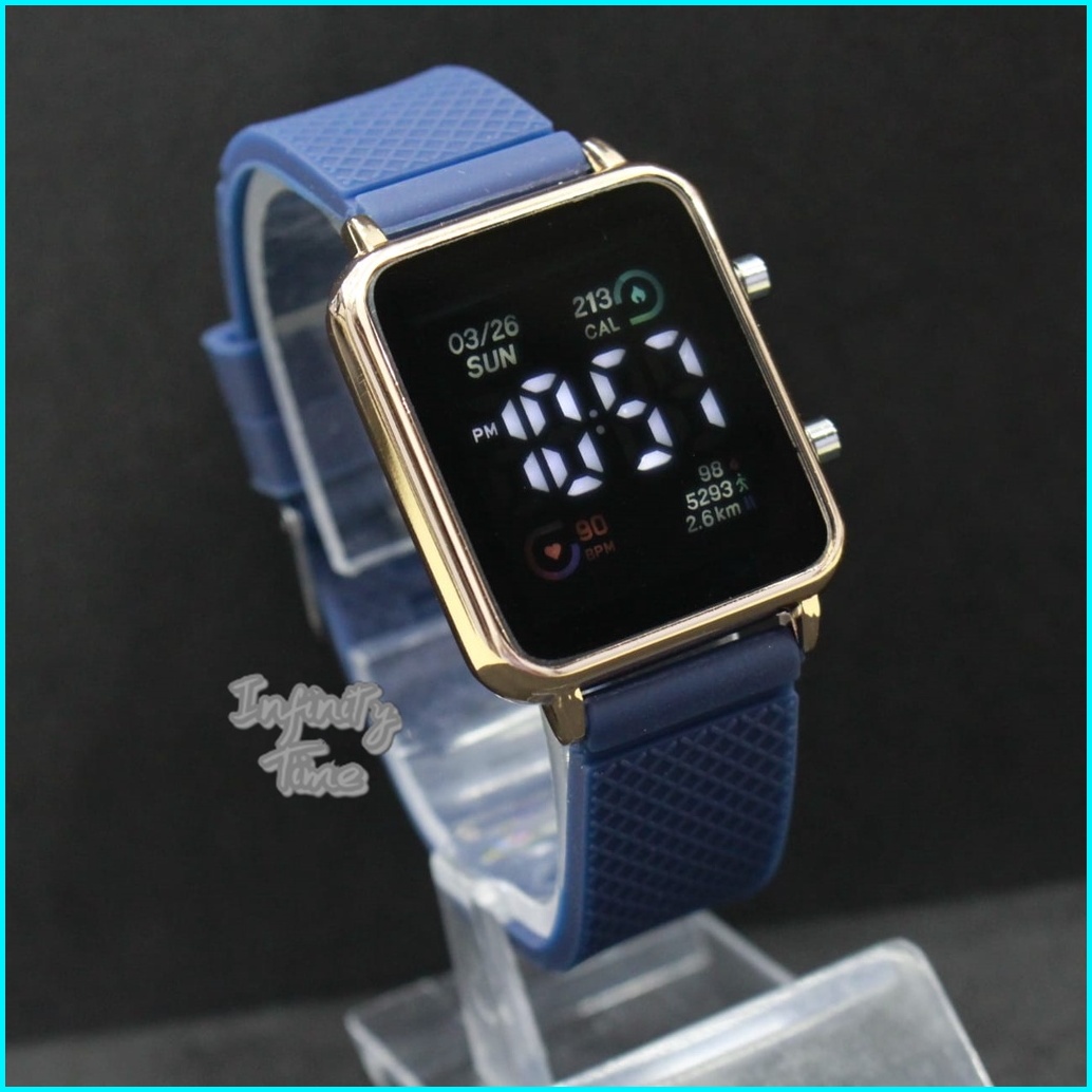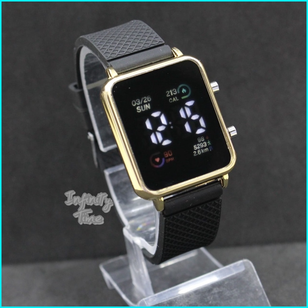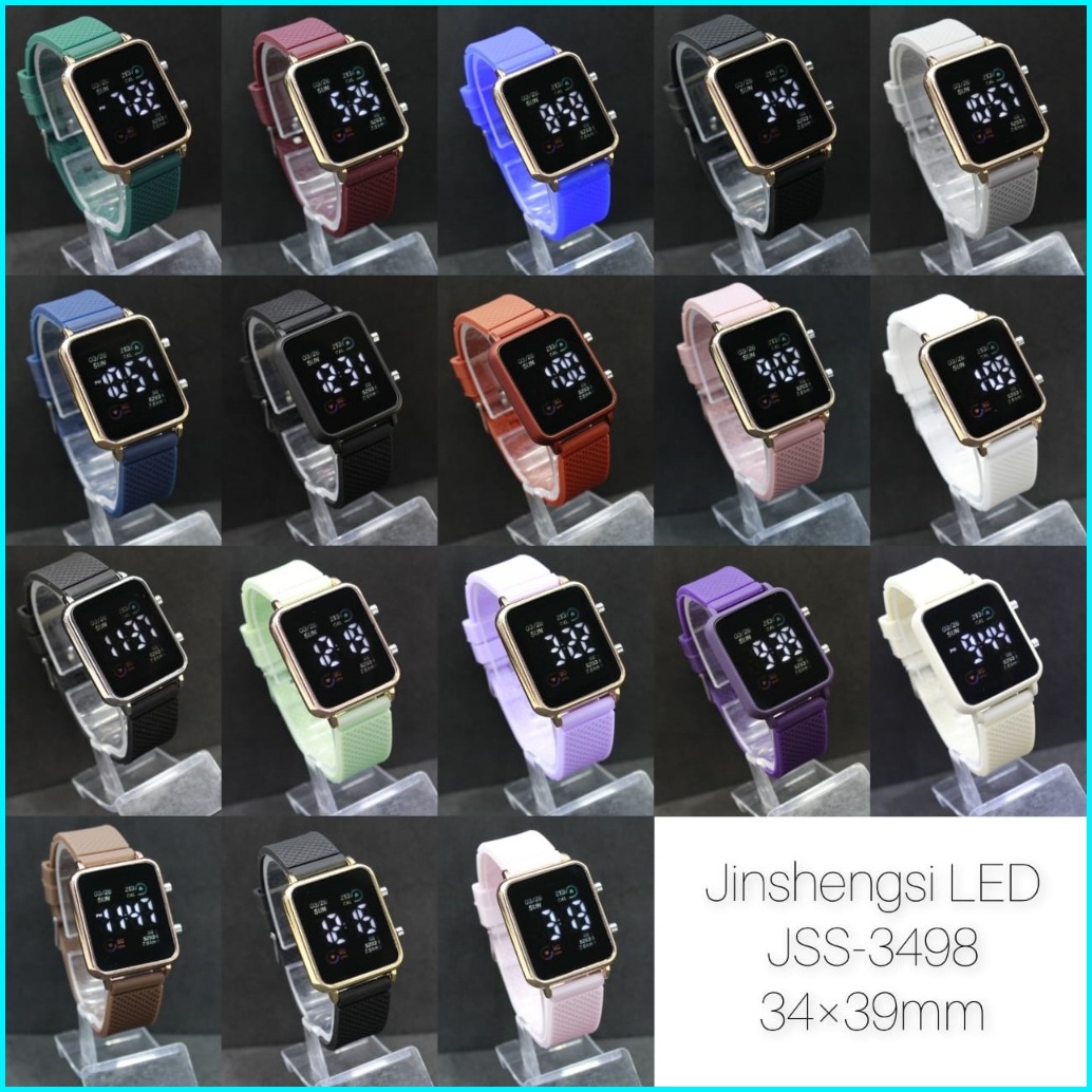 Jam Tangan Led Watch Jss3498 Kotak Cewek Cowok Strap Rubber