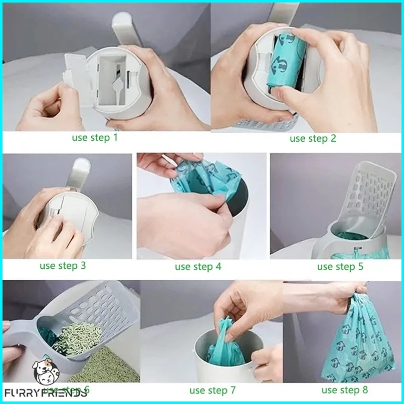 Aimayapet Kantong Kotoran Sekop Litter Box Kucing Serokan Pasir Poop Pet Cat Scoop Bonus Dispenser Kantong Plastik