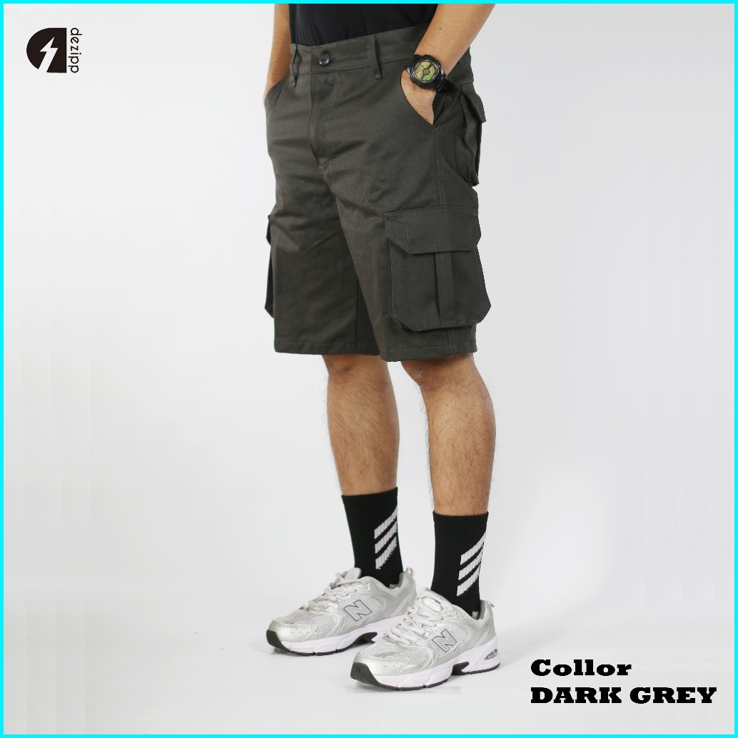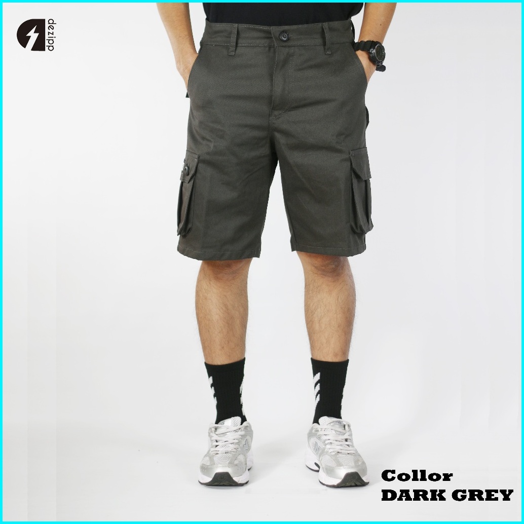 Dezipp Celana Cargo Pendek Pria Original Warna Abu Tua Size 27-42 Bahan Premium Quality Celana Kargo
