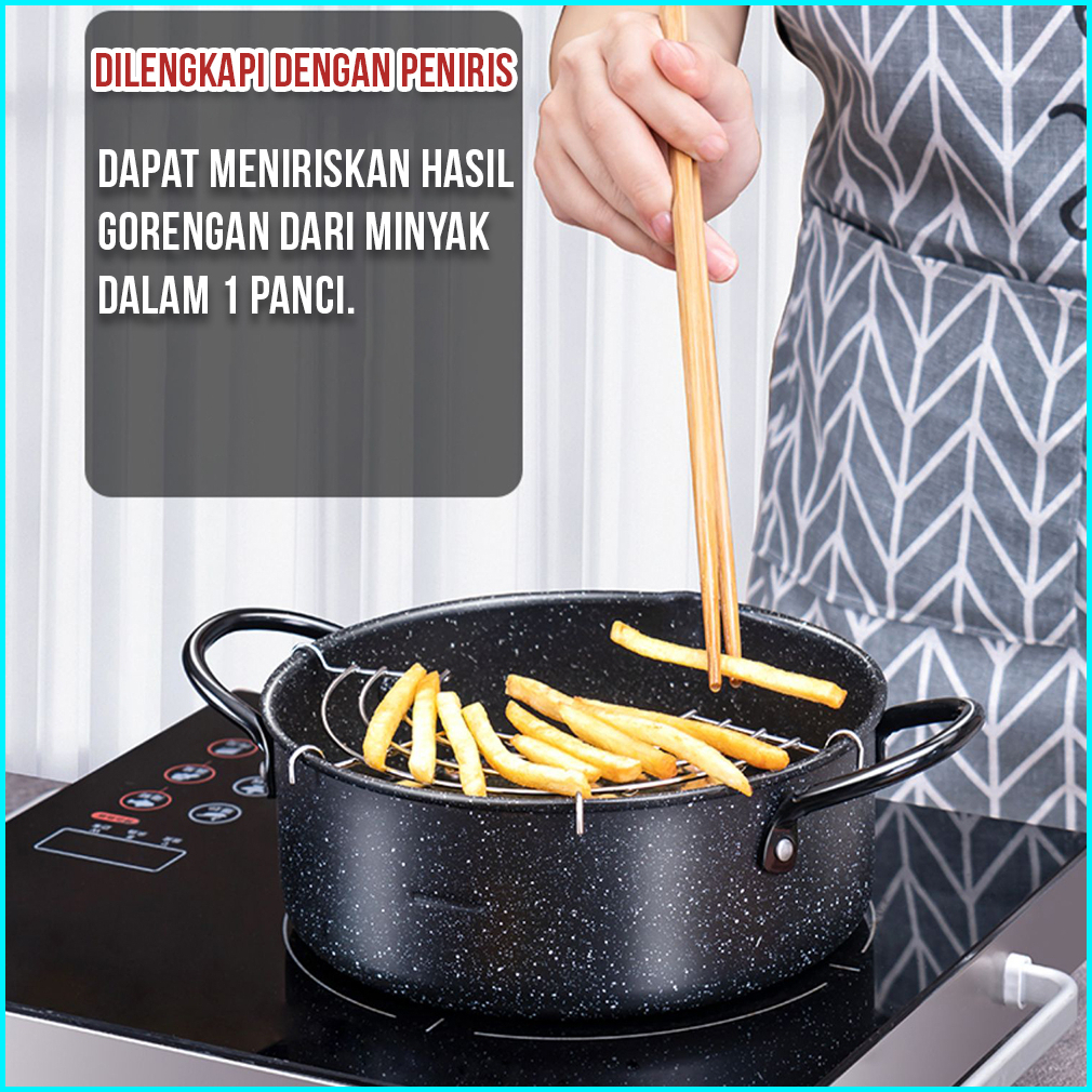 Wow Panci Penggorengan Panci Multifungsi Deep Frypan Cookware 20cm Dilengkapi Dengan Alat Tirisan Minyak Panci Serbaguna