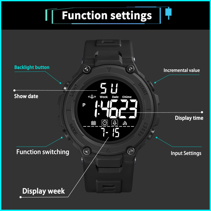 Jam Tangan Pria Digital Sport 2026 Anti Air Original Strap Rubber