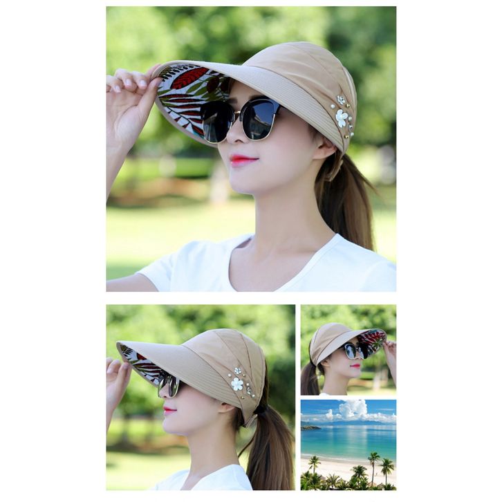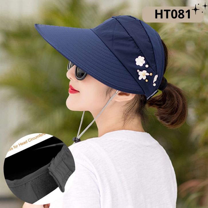 PREMIUM HT081 - TOPI WANITA PANTAI OUTDOOR SUN VISOR ANTI UV MOTIF BUNGA igormn