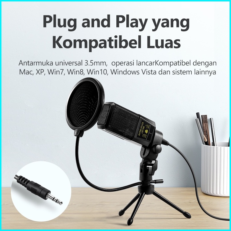 Hot Kivee Microphone Condenser With Tripod Stand Pop Filter Microphone Portable Original