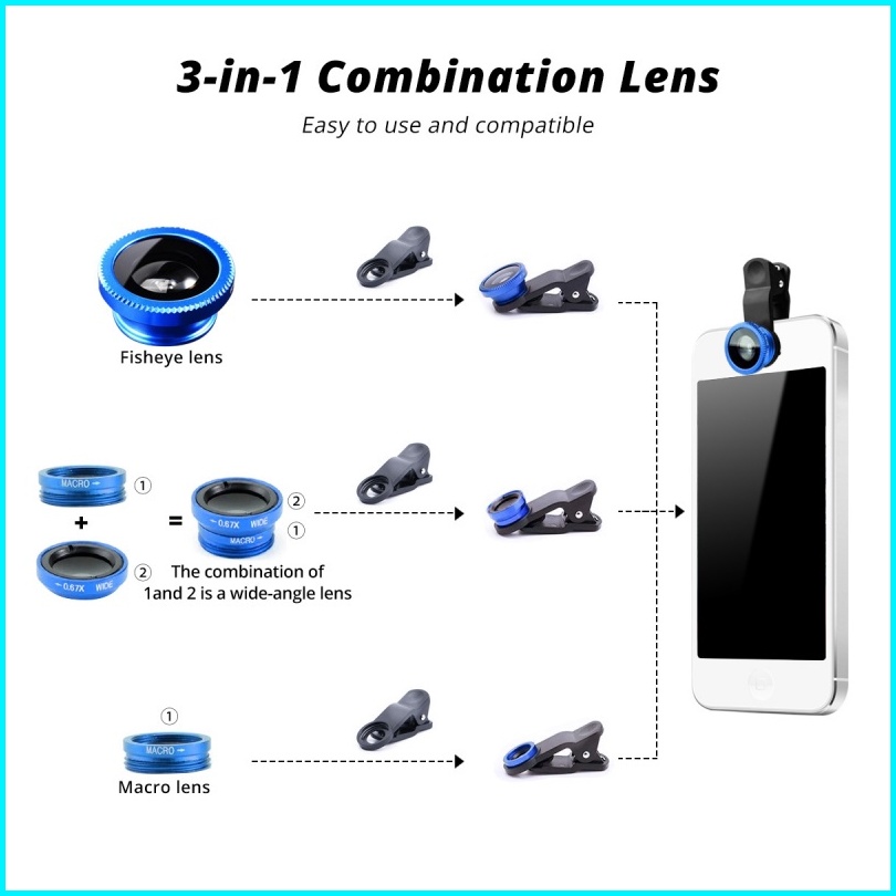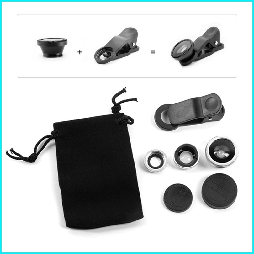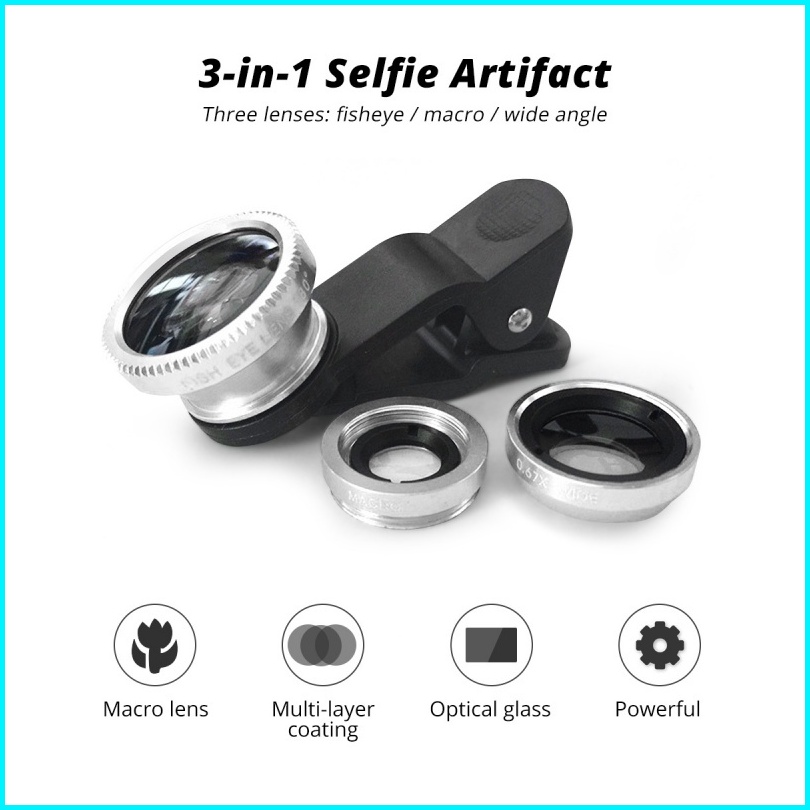 3in1 Lensa Kamera Fisheye Wide Angle Hp Macro Lensa Zoom Dengan Klip On Untuk Smartphone Fisheyes