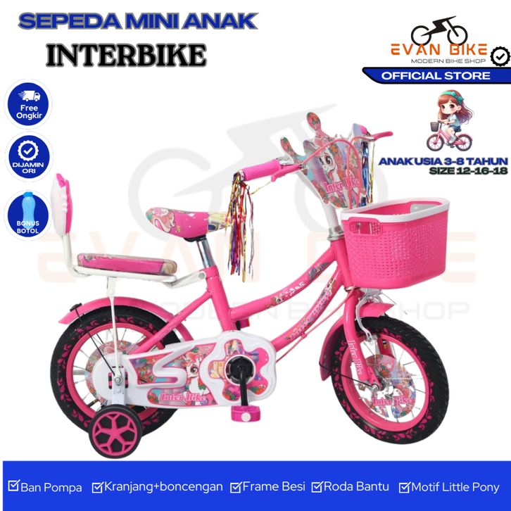 Sepeda anak mini INTERBIKE CITYBIKE Ban pompa POLOS untuk usia 4-8 tahun Bonus botol air