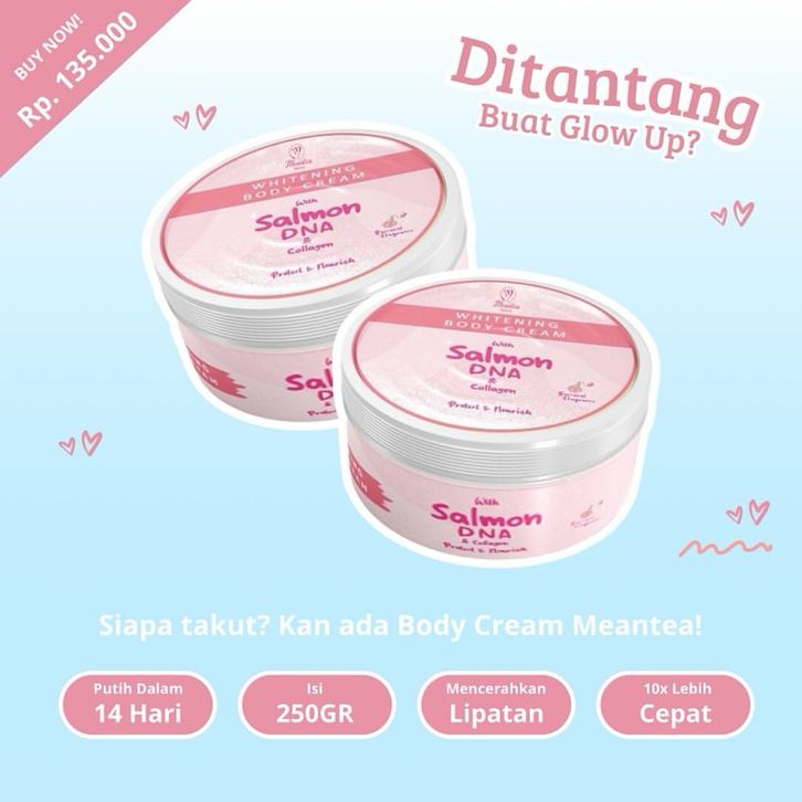 Kmasan Terbaru MEANTEA BEAUTY by Katya Skin Whitening 250gr Body Cream With Salmon DNA dan Collagen