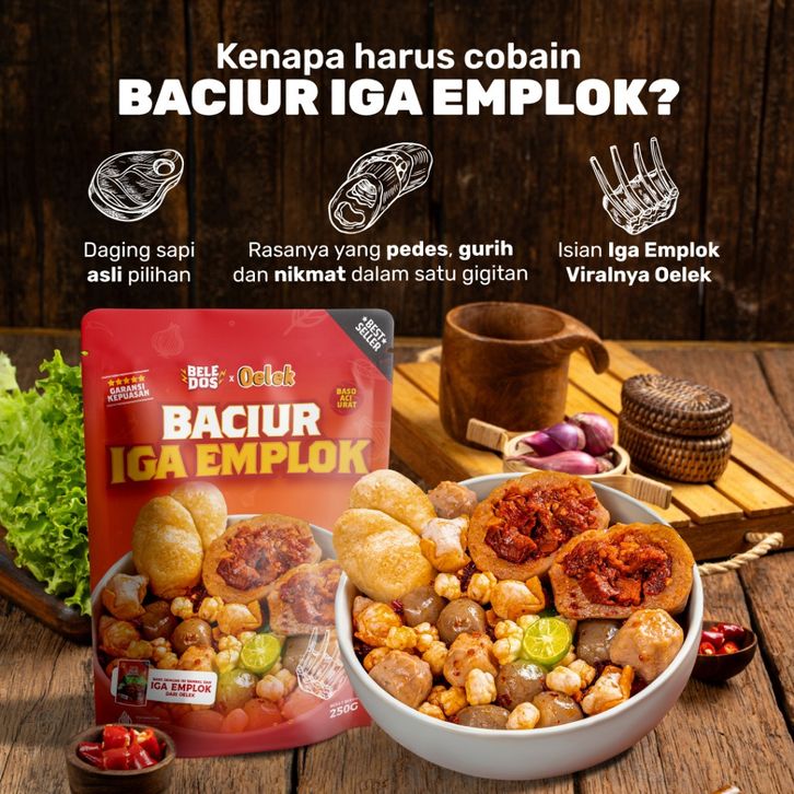 Beledos Paket Bertiga Baciur Iga Emplok 250 Gram dengan Sambal Taichan