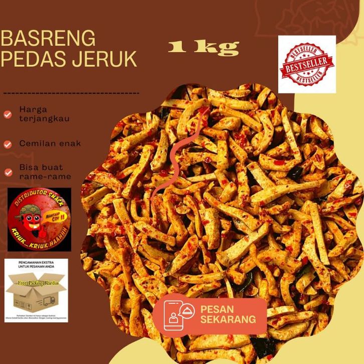 Basreng Pedas jeruk, Basreng mentah stik, Comrng, Digoreng tanpa bumbu, Original/asin jeuk