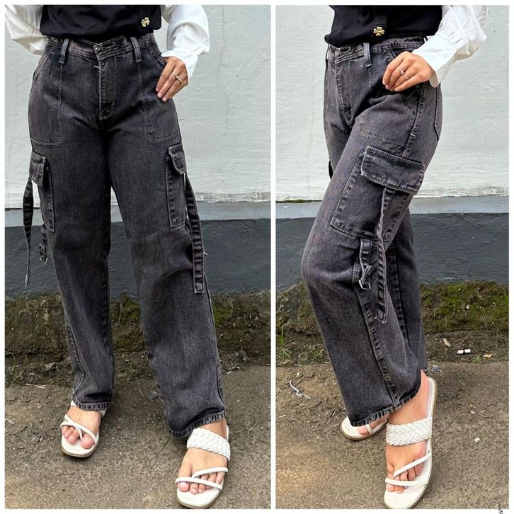 FORLY Cargo Jeans Wanita Celana Highwaist Cargo Loose Snow Boyfriend Kulot Jeans Korea Street Style Cargo Jumbo Murah