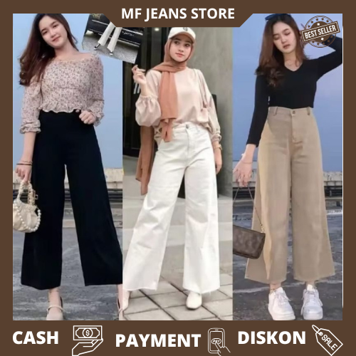 Celana Jeans Kulot Moza Wanita Terbaru Celana Kulot Wanita Jeans Kekinian Korean Style Highwaist Celana Panjang Murah