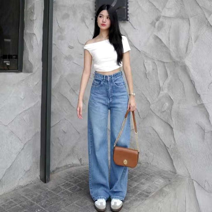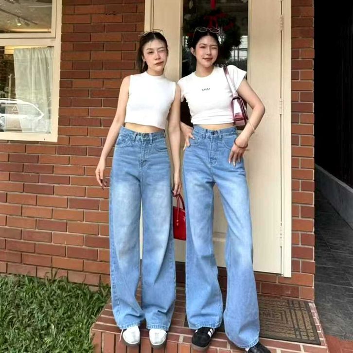 [Star] Celana Jeans Wanita Size 27-34 Highwaist JO Baggy Pants Kasual Biru Retro Kekinian Korean Style Import