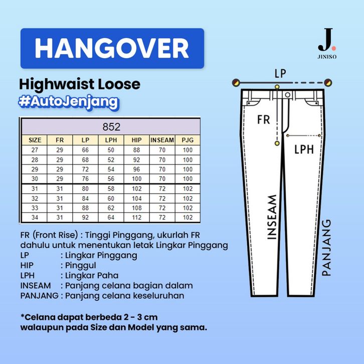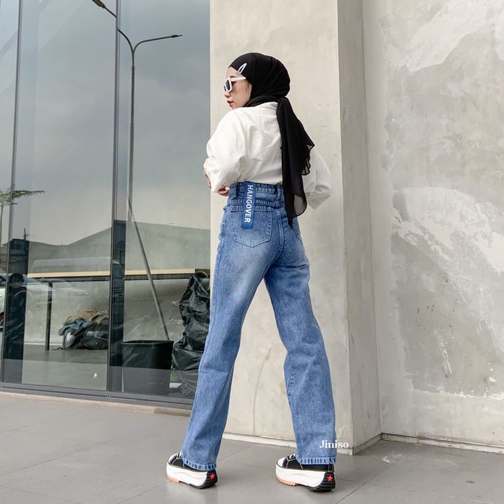 Jiniso Celana Highwaist Loose Jeans 852 Hangover Celana Panjang Wanita Korean Style Celana Retro Wanita Baggy Kulot Ori