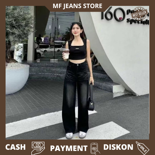 Celana Kulot Jeans Loosepant Gombrong Jumbo Highwaist Wanita Highwaist Baggy Jeans Hangover Celana Unisex Premium Jumbo